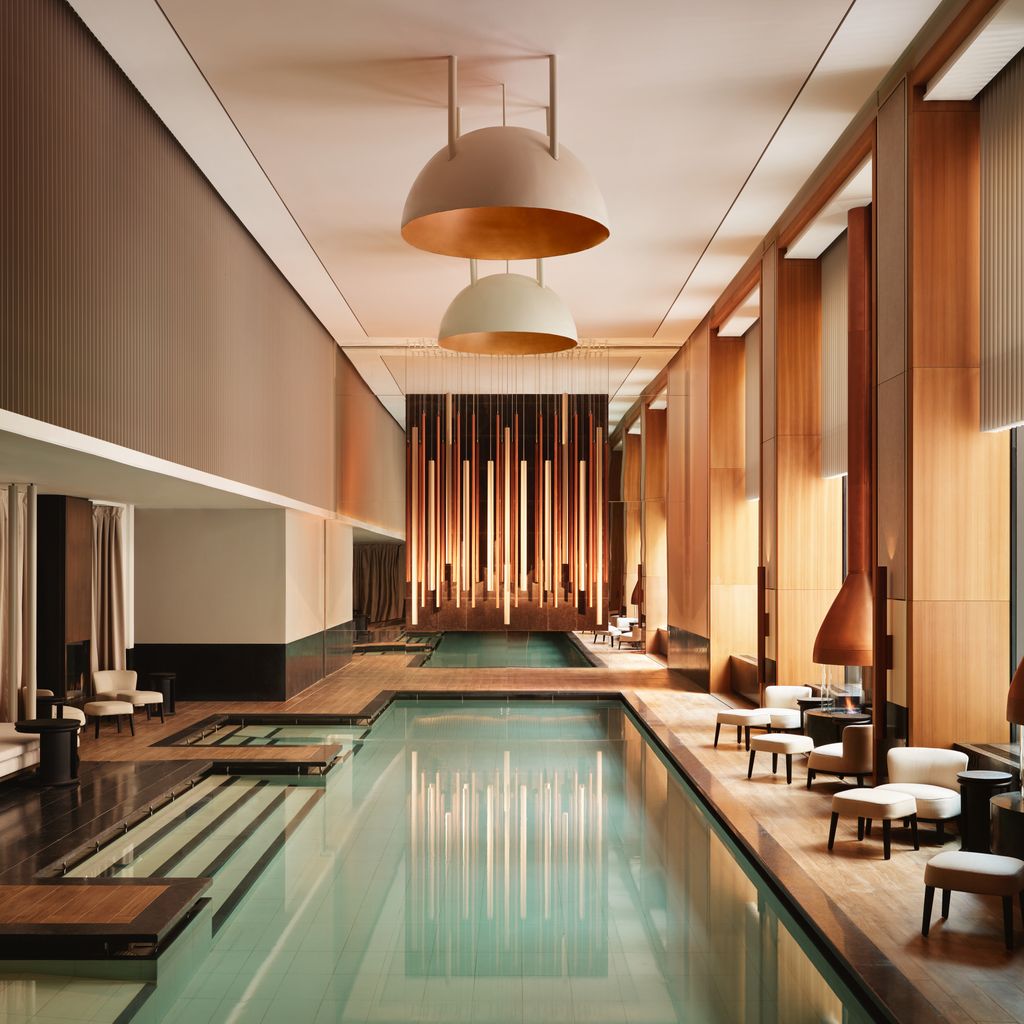 Spanning 27,000 sq feet over two floors, there’s a good size gym, steam, sauna and plenty of treatment rooms where you can enjoy anything from a massage to a gong bath. There’s also a magnificent indoor swimming pool, around which are relaxation areas that have their own fire pits.