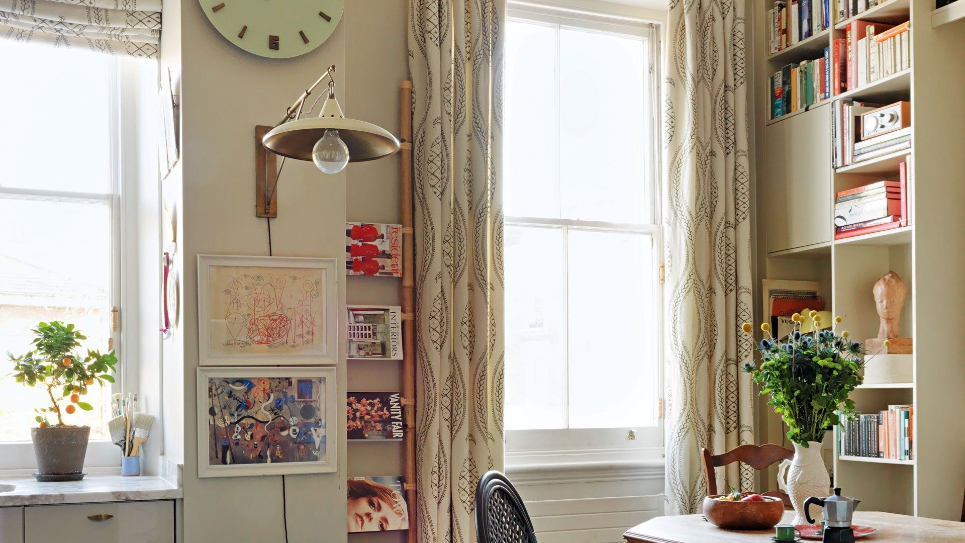 Beata was energised, rather than fazed, by working to a tight budget. 'I identified areas where I could spend and areas where I could save,' she asserts, explaining she does the same for clients. Consequently, she has invested in quality fixed surfaces, including a marble kitchen worktop and a stone bathroom floor, and chic soft furnishings. 'A good curtain-maker is worth the investment, because beautiful curtains add height and drama,' she says. But she has saved by buying budget bathroom fittings and found inexpensive pieces of furniture - such as the mismatched dining chairs, bought in Portobello market at £15 a piece - as well as executing most of the artwork herself.