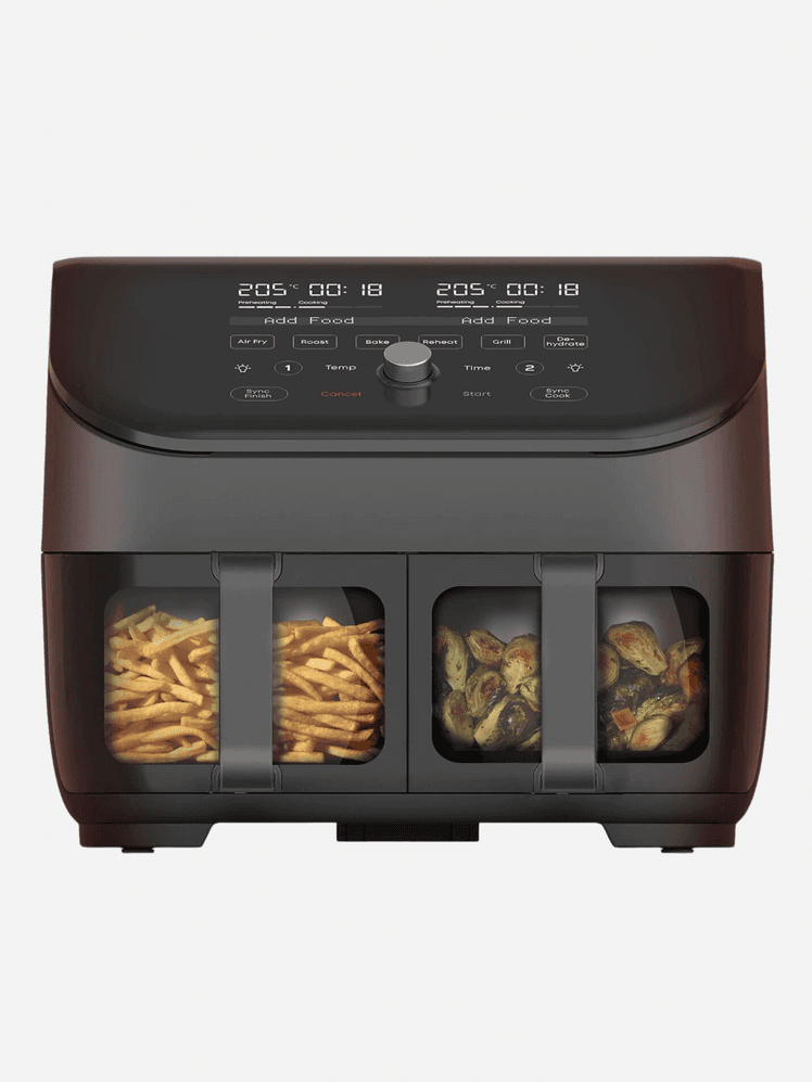 There's also 'double', or 'dual basket air fryers', which have two separate cooking compartments, and can cook different foods simultaneously while ensuring they’re ready at the same time. They're extremely useful, but are bigger and more expensive.