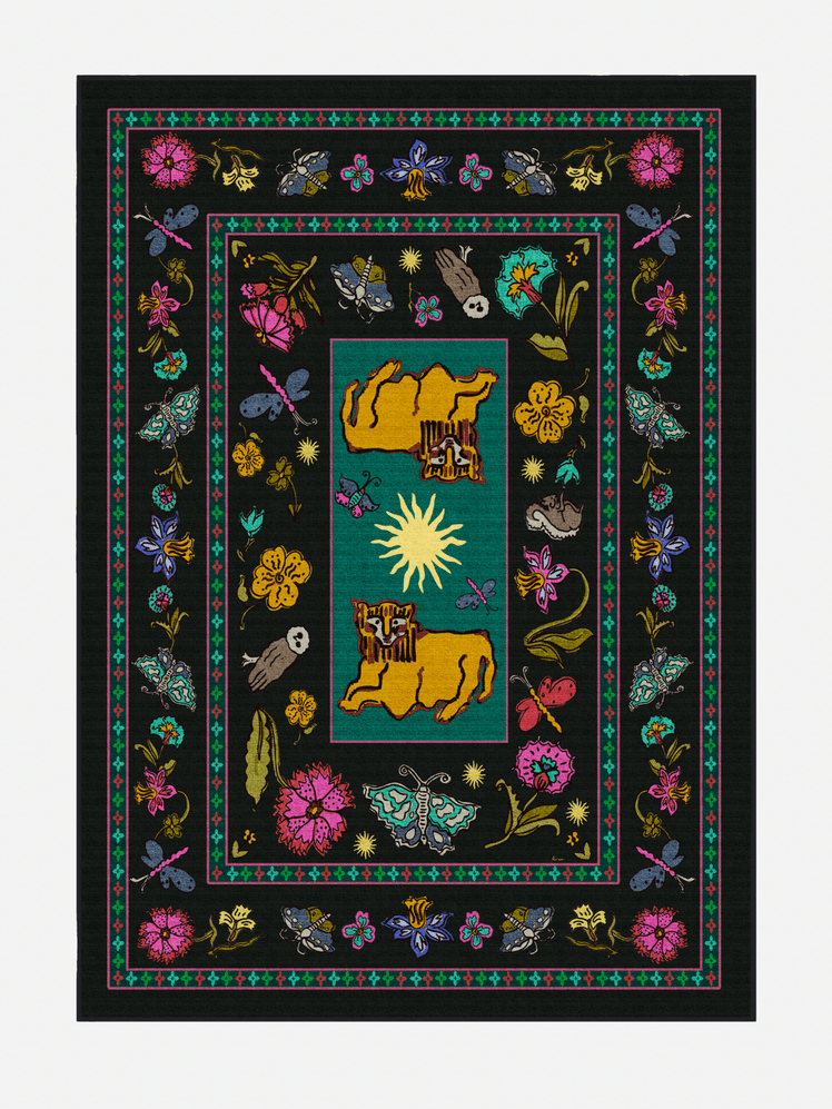 For Henrietta and Orlagh, who launched a successful curated homeware collection last year, the collaboration with Ruggable made perfect sense. Featuring floral motifs inspired by their own hand-painted designs, psychedelic colours and evocative geometric designs, the collection has something for the RIXO devotee and the curious maximalist alike. 'We wanted the designs to feel vibrant, unique, and full of little details you discover over time - the kind of pieces that make a home feel like truly your own,' they both share.