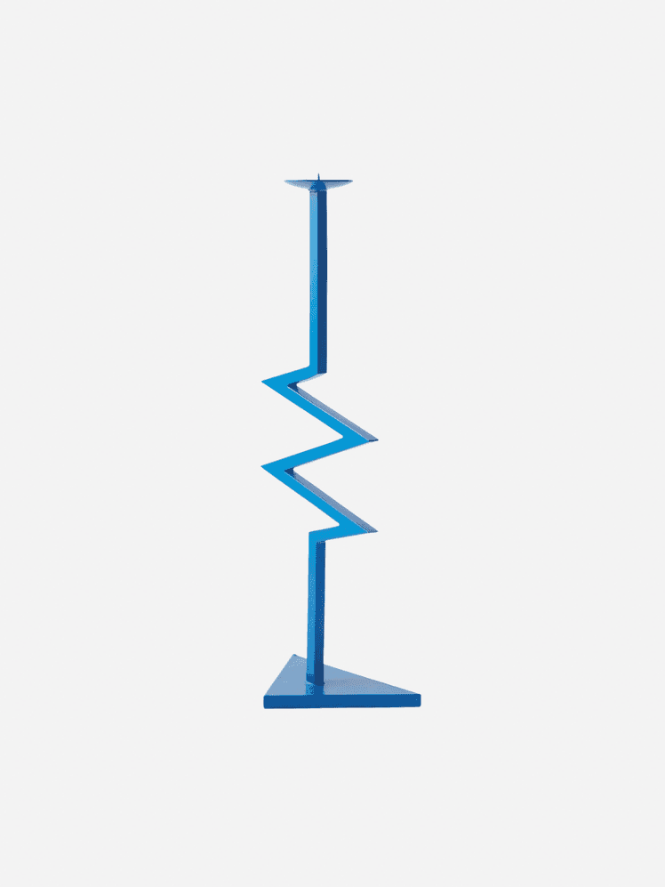 Painted in Farrow & Ball's Archive shade ‘ Blazer’, this flamboyant space also features purple office carpet bought as a remainder, paired with a wonderfully chaotic violet fabric from Viola Lanari. The room is full of interesting shapes, from the zig-zag lamp by Jermaine Gallacher to the bulbous plaster candlestick from A. Prin. The cushions are made up in Sibyl Colefax's ‘Lilies and Geranium’ pattern.