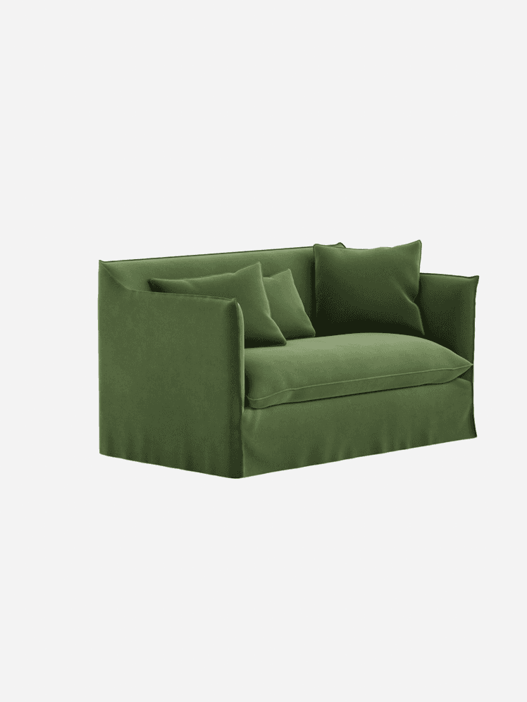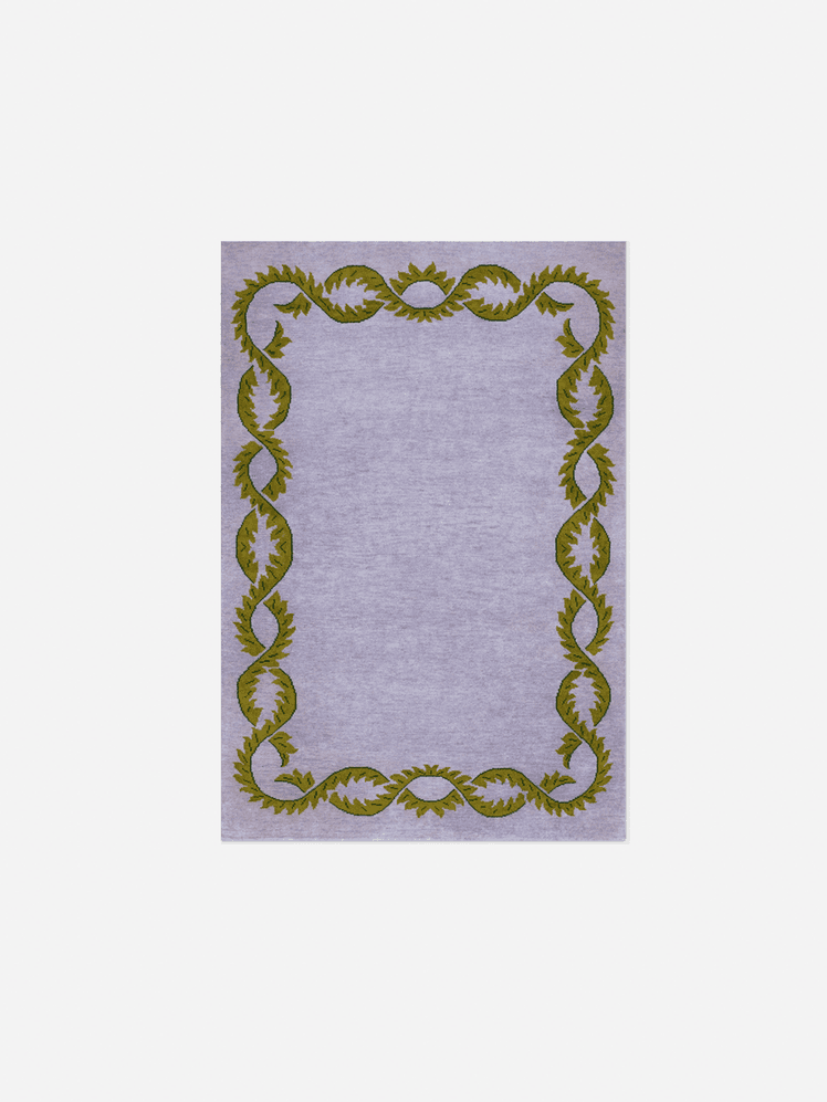 The walls here are in Farrow & Ball's Sap Green with the woodwork in Bancha. The sofa was made in a green cotton velvet by Love Your Home, scattered liberally with cushions made up of Sibyl Colefax’s Lilies & Geraniums, Decor Barbares’ Dans Le Foret, and a number made by Max’s sister Flossie from Indian Kantha cloth as a house warming present. The whole sits on a carpet designed by Campbell Rey for Nordic Knots.