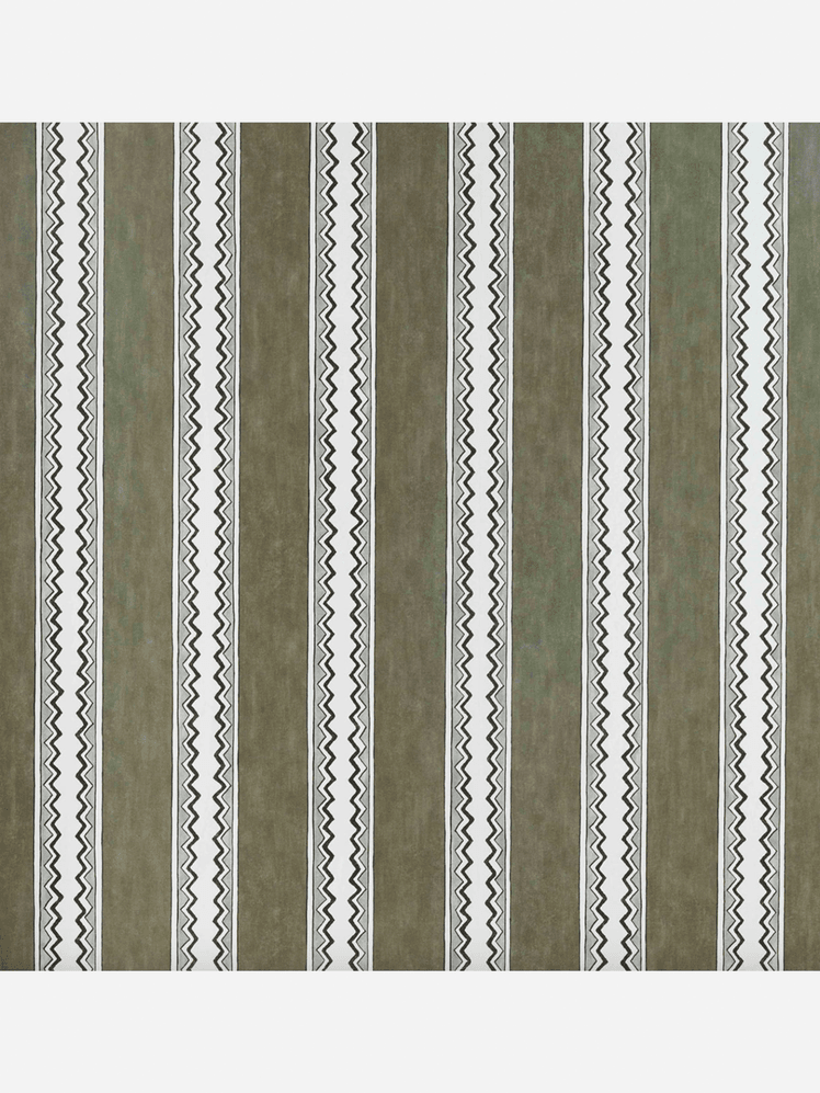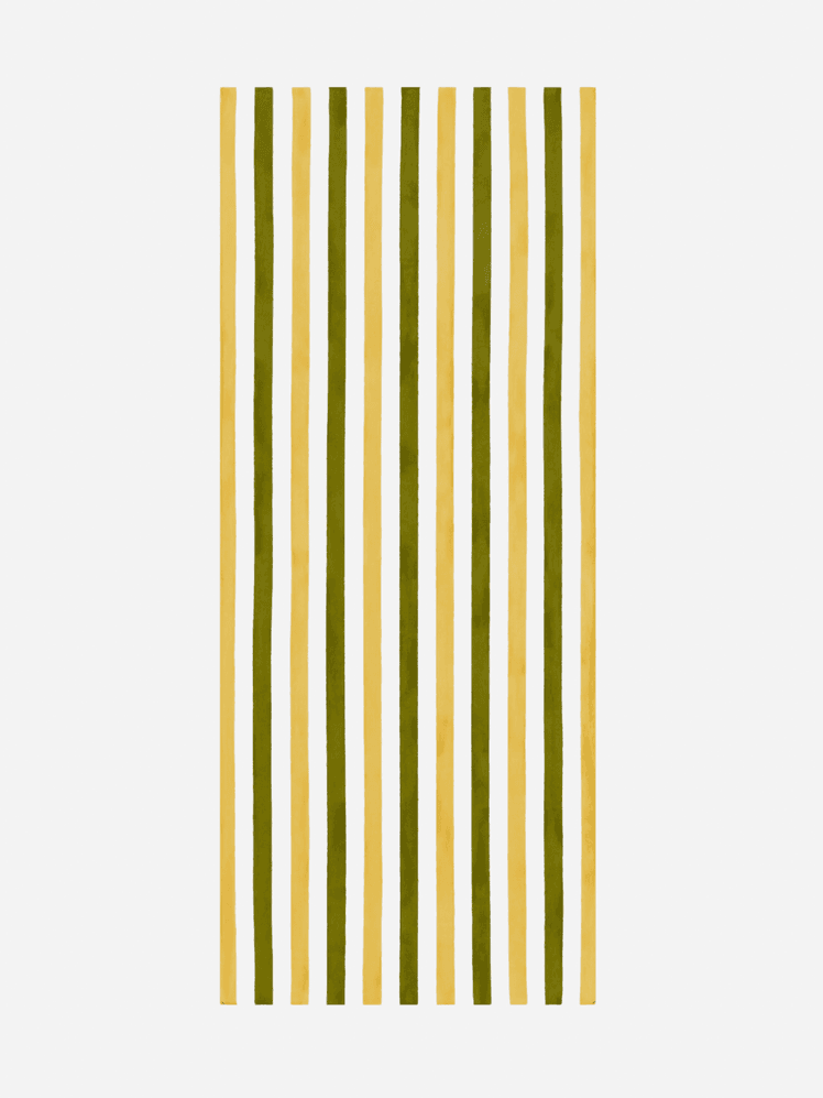 This narrow room presents a challenge in its awkward sizing. However, instead of working against that fact, the duo leant into it, covering the walls and blinds in the same green stripe. The effect is enveloping and cocooning, and ultimately distracts from the room's small square footage.