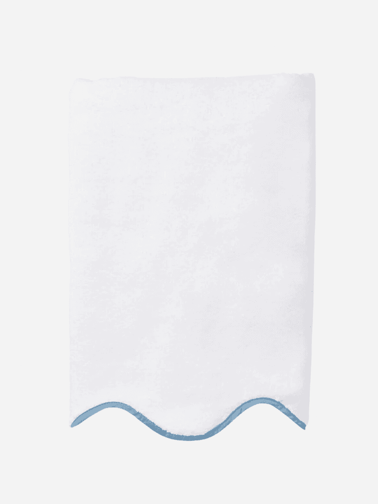 The same Antoinette Poisson print is repeated in the en suite bathroom, linking the two spaces harmoniously. Rebecca Udall's scalloped towels are the perfect finishing touch to this ultra pretty bathroom scheme.