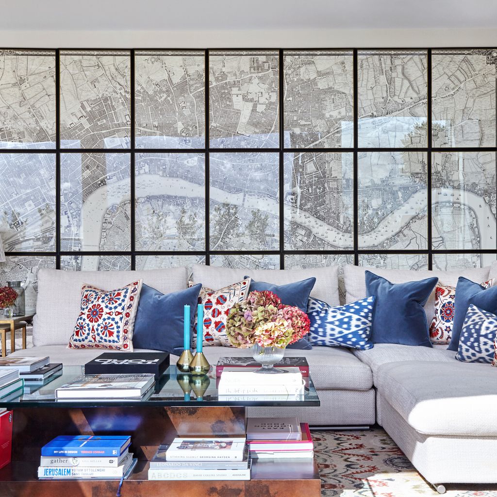 This Notting Hill flat has been the perfect canvas for experimenting with design and a space that has grown organically over time. It is rare to have been given such flexibility, a real luxury for us. The sitting room, with its high ceiling, was painted in Farrow & Ball’s Setting Plaster which has become one of our firm favourites. It works brilliantly with so many other colours. A balanced mix of furniture – mid-century, antique and contemporary sit alongside each other with a mass of pattern from the fabrics and art/wall hanging. A moss green Tadalakt bathroom allowed us to avoid joint lines between different wall finishes; ideal in a small space. Another preferred product because of its sheer versatility.