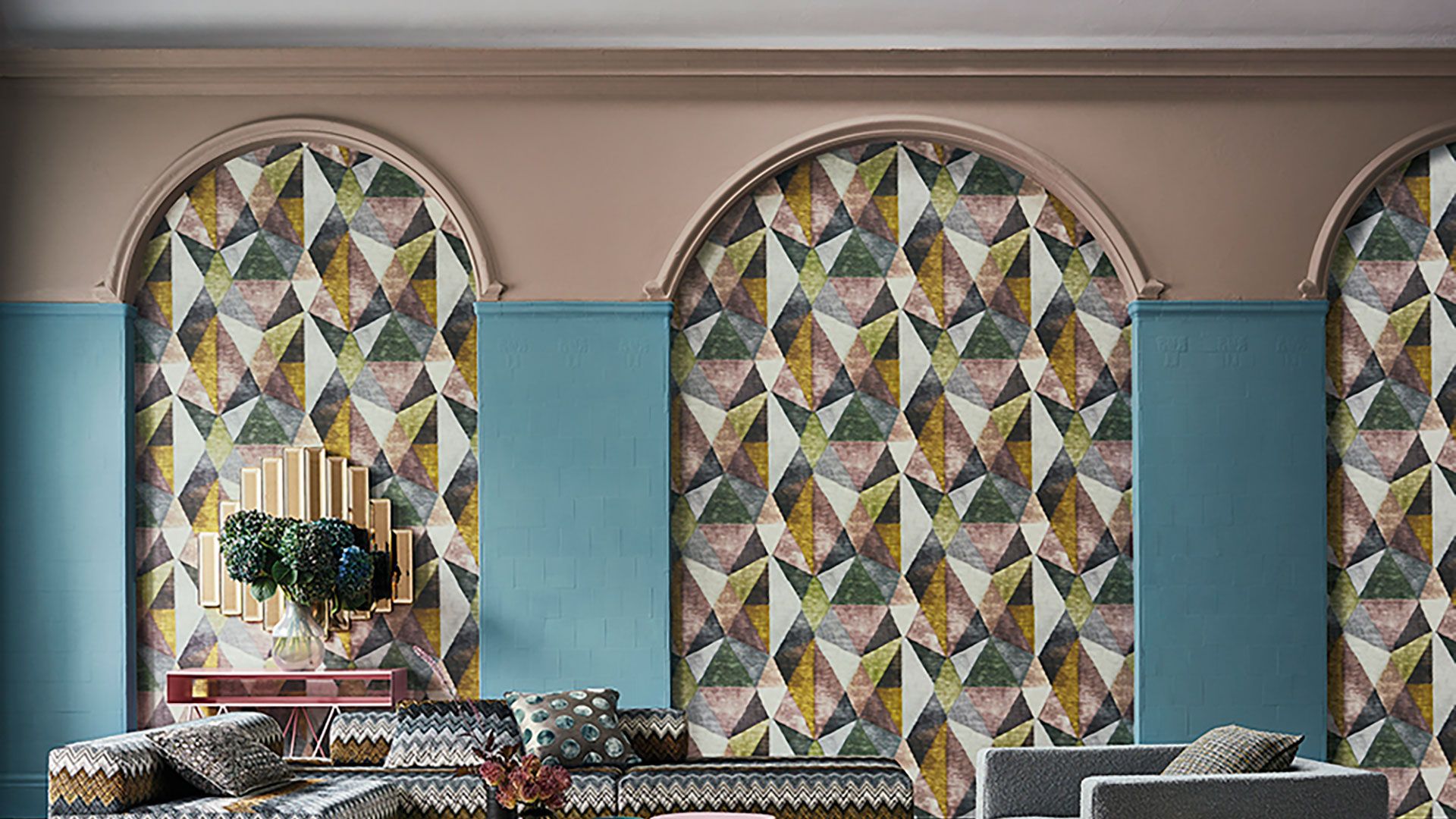 Each of the four collections that make up the launch has its own character, from the vibrant colours of the Zafaro range, in both fabrics and wallcoverings, to the tactile qualities of the Ikulu and Nuala fabrics. Texture is everything, and the launch includes everything from sumptuous velvets to fine linens and silks. Innovative printing and weaving techniques help to set the collections apart from their peers. In several of the fabrics, a textured weave is combined with a print to create an unusual sense of depth. ‘Susulu’, for example, is jacquard woven, then printed with loose, playful diamonds in varying colours, while long threads of yarn are left floating, eventually to be cut into a delicate fringe. From a distance, this curious texture gives the fabric a soft, fluid appearance, but a closer look reveals the true intricacy of the method. The ‘Kivuli’ fabric also uses an ingenious technique to mimic the effect of embroidery. The sweeping geometric design has a basis in fine pima cotton with a satin weave, but a shrink yarn has been incorporated; this contracts during the finishing process, creating a raised effect that appears to have been stitched by hand.