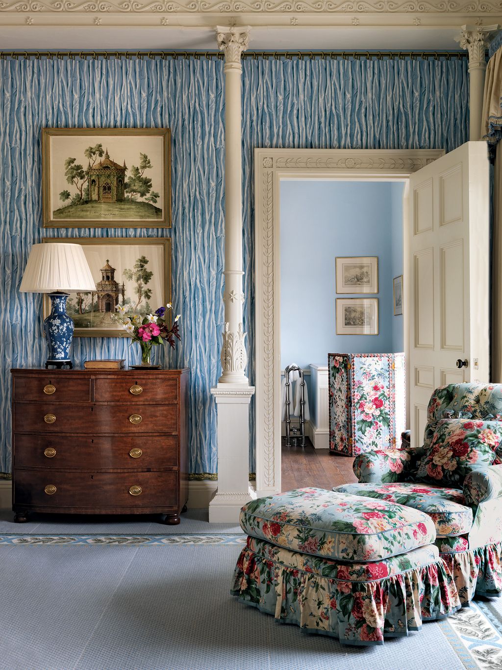 It was a huge project, for which Fred and Kay assembled a large team comprising the finest talents available on either side of the Irish Sea. In overall charge was Jim Reynolds, already well known for the outstanding garden he had created for himself at Butterstream, County Meath, while the key role of project manager went to Englishman Woody Clark - working in tandem with the English architectural firm Purcell Miller Tritton - who had made a resounding success of the restoration of one of Ireland's most beautiful Georgian houses, Castletown Cox. But perhaps the greatest challenge was to find the right person to mastermind the redecoration and furnishing of the interior. The Krehbiels' old friend Imogen Taylor, formerly of Colefax and Fowler, felt that it was too massive a job to take on as she neared retirement, so she recommended London-based interior designer Colin Orchard. He worked in constant consultation with the Krehbiels and Jim Reynolds, and the results are impossible to fault, with infinite attention to detail in both aesthetic and practical matters.