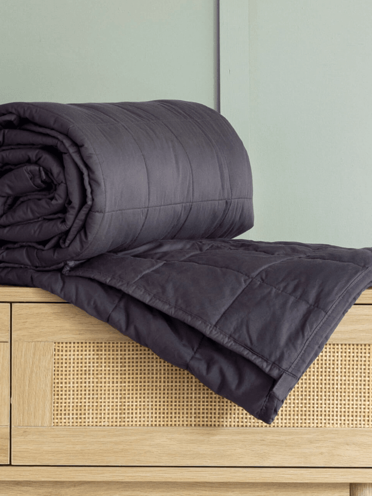 This weighted blanket is from a brand best known for offering luxe at-home spa-style decadence with pampering products and it comes in four weight options, spanning across 4.5kg to 11.5kg. Containing glass beads and polyester, the grey quilted blanket also features an ESPA logo on one corner. Made from 100% cotton, the blanket is breathable too, further compounding that calming feeling its pressure stimulation will create.