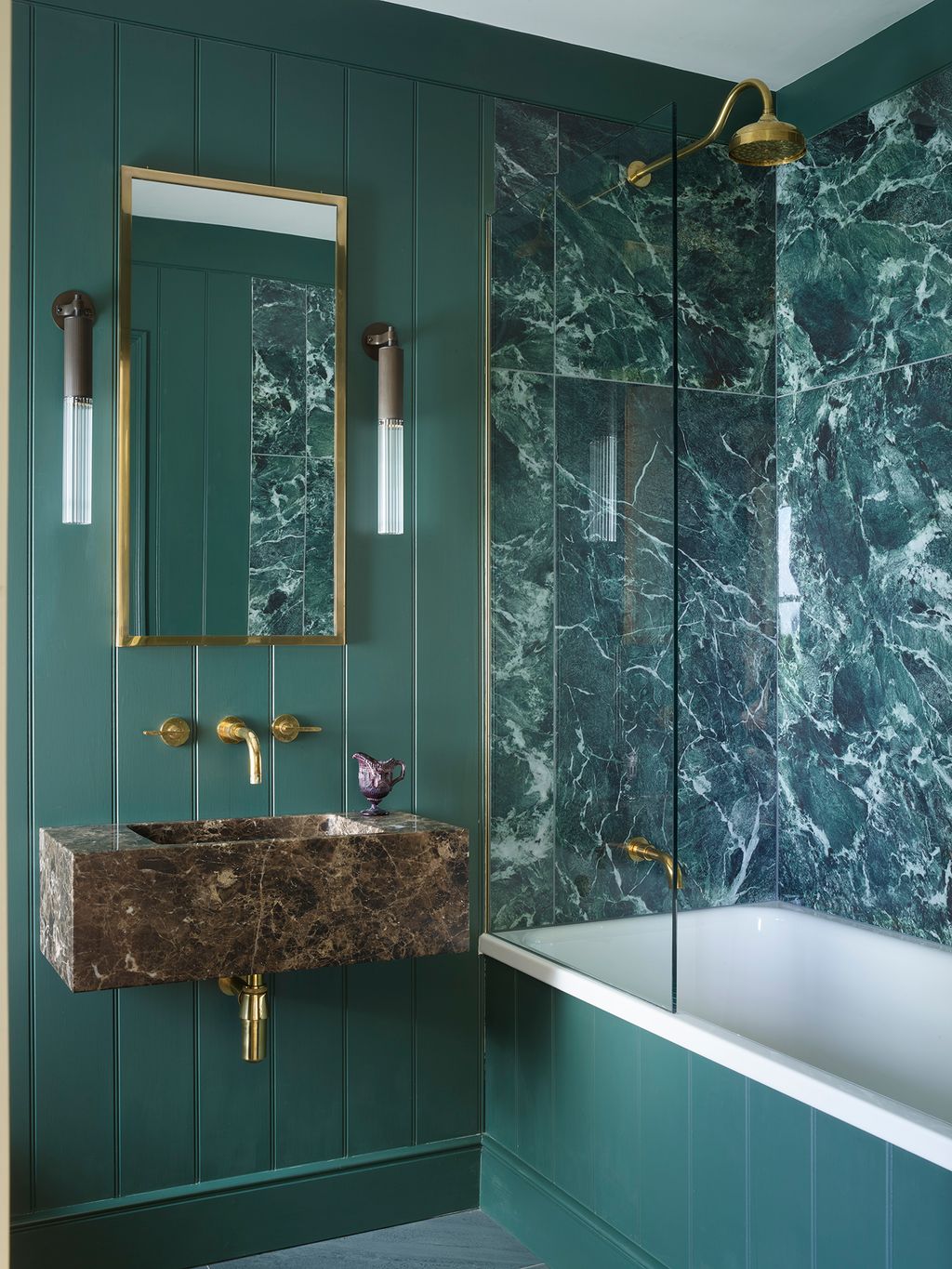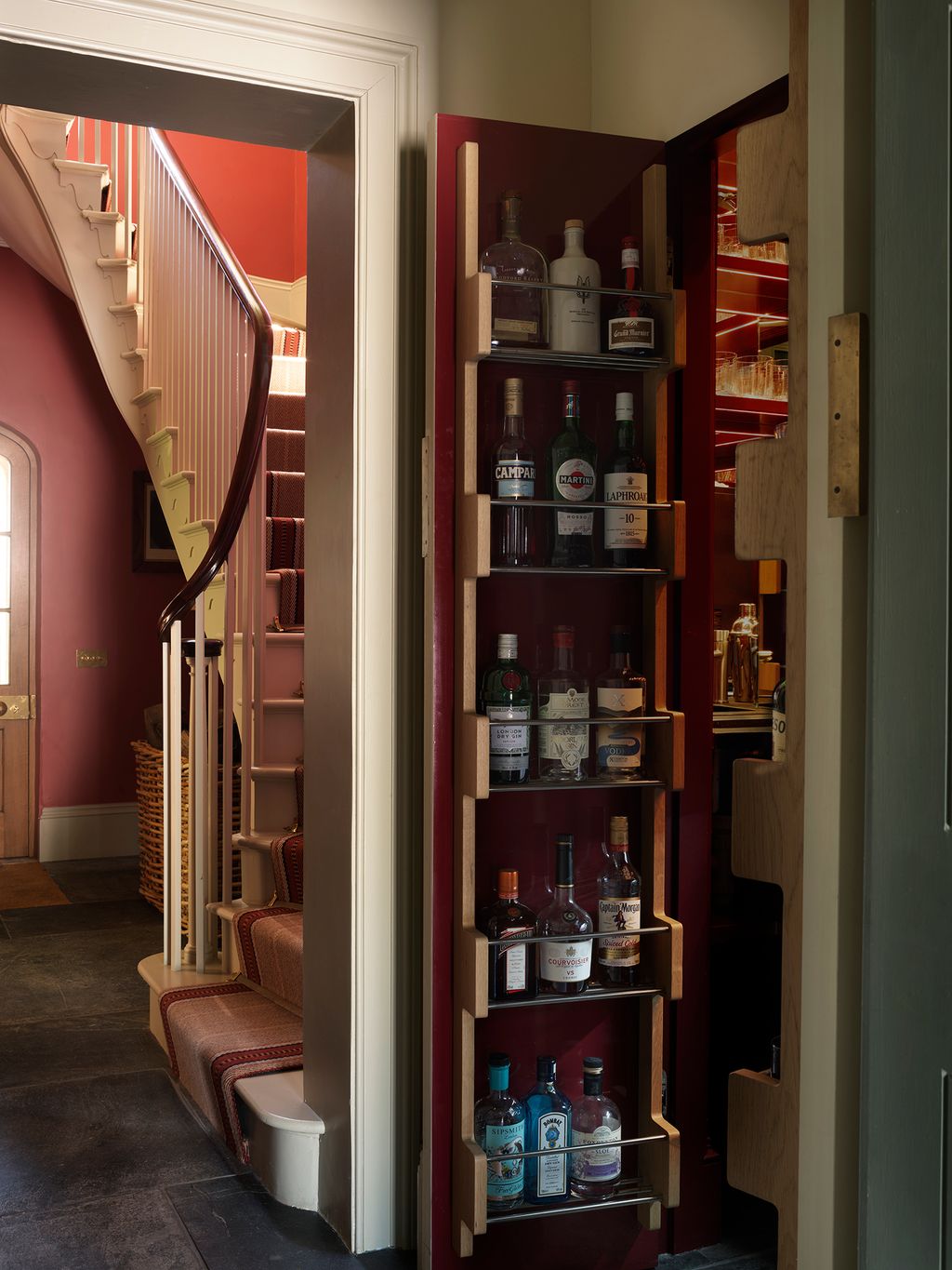 Walk into the hall and there is a long view through the house out to the moor on the opposite side of the valley. The floor, of salvaged antique Cornish slate flagstones (the pair collected 250 square metres of these), has been laid in straight courses. Charles devised the handsome, deep panelling here with their contractor, Ulrik Lawson.