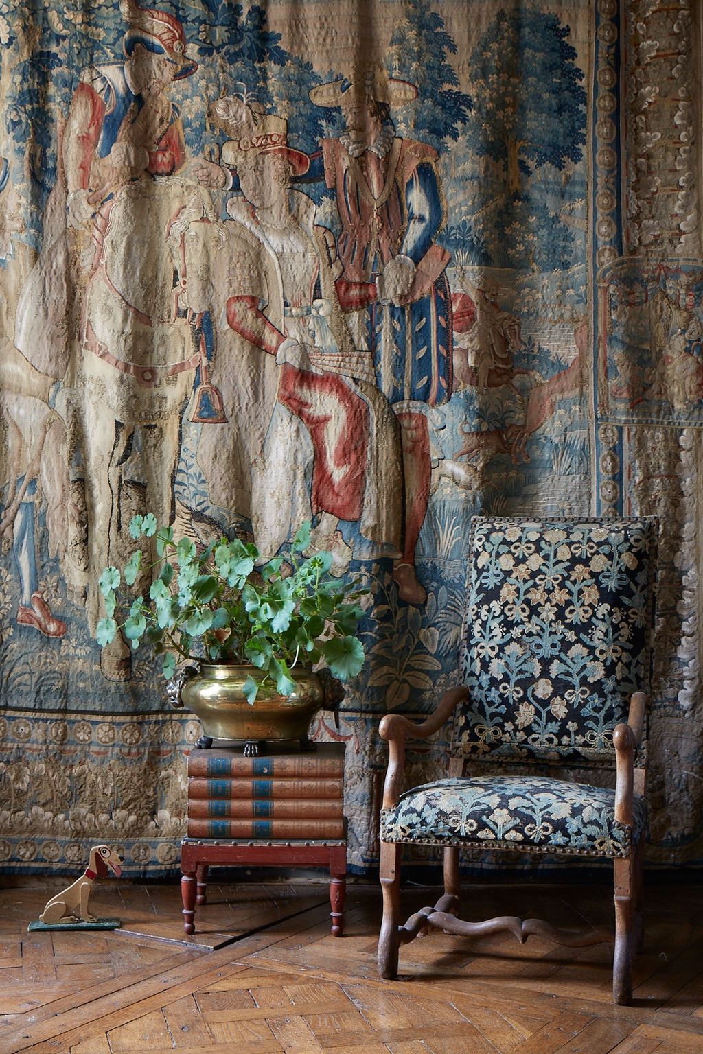 Thirty years after that meeting in the ballroom, Amelie, who became the Duchesse de Magenta when she married in 1990, remains the proud chatelaine of Sully. It was here, with its moat, countless bedrooms and wonderful state rooms, stunning courtyards and vast and varied outbuildings, that she and Philippe, who died in 2002, raised their two children. Pélagie, 25, now works for an events company in London, and Maurice, 23, the 5th Duc de Magenta and 10th Marquis de MacMahon, is currently in Lyon working and studying to become an ingénieur. 'He's at one of France's most prestigious ecoles Arts et Métiers,' says Amelie. 'And, yes, his mother is extremely proud!' Keeping Amelie company while her children are away are her dogs. Her fox terrier, Gyulai, was named after the Hungarian commander of the Austrian troops that Maréchal Maurice de MacMahon defeated at the battle of Magenta in 1859.