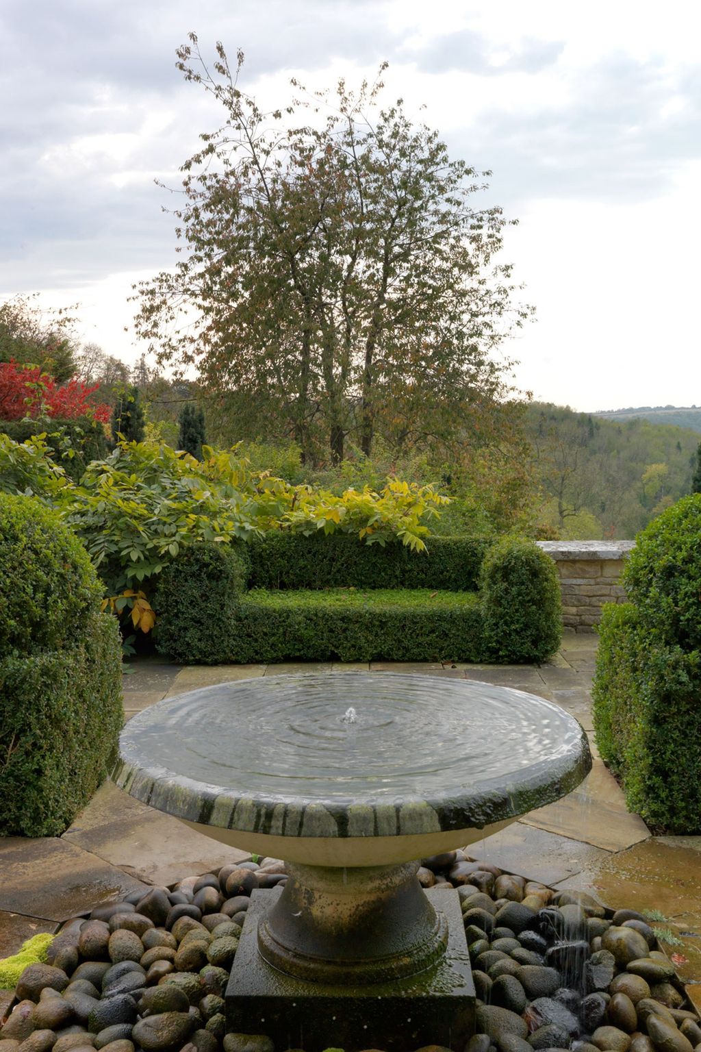 Although the spectacular view was one of the key features of the grounds, the owners decided not to make it a major feature, preferring to highlight the design and layout of the garden instead. Yew hedges are a key component in dividing the garden, and create discrete 'rooms' along the terrace. In one of them, an oak window has been built through which you can look out over the countryside, or even in at the garden from beyond. They may be new, but such is the skill with which the house and garden have been designed to complement each other that they could have been here forever.