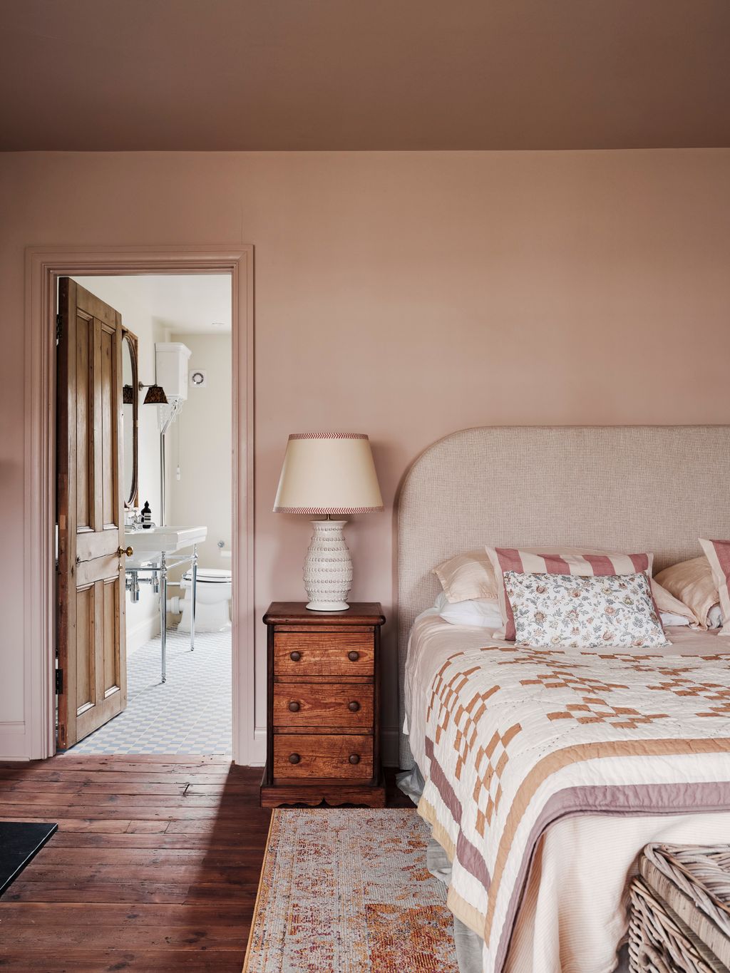 If the house is now fulfilling its purpose as a place for entertaining, there is plenty to interest the visitor. A dark and glamorous TV room with a mid-century atmosphere leads off the kitchen, while in the other direction is a light and airy conservatory, strung with festoon lights and just crying out for a drinks party. Upstairs, a soft pink bedroom and an adjoining dressing room, filled with cabinetry for the owner's extensive collection of clothes, provides a place to retreat. As a first home, we can't imagine anything more luxurious.
