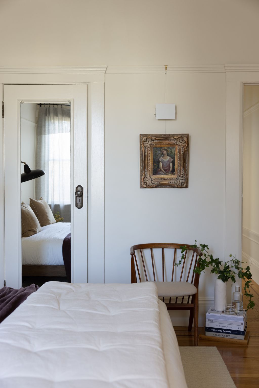 Bearing this newfound design inspiration in mind, together, the couple and Hana sourced “a lot of antiques” that “brought stories” and “added layers” to the “monochromatic, all-white” space, supporting local businesses and artisans like GENERAL STORE, Big Daddy's Antiques and brass-worker Ramsey Conder. The couple also asked Hana what they themselves could repurpose; “they had a very sustainable attitude when it came to design,” says Hana, “which I absolutely loved”. Hana and Jess also scoured classified advertisement website Craigslist and frequented “this big designer boneyard in the Bay Area", picking through old architectural details awaiting adoption from discerning designers. Using these repurposed materials helped to make the basement feel more “lived in, which is exactly what I love about the English cottage design mindset”. “All together, we wanted to create a cosy and warm [space] with different textures,” Hana remarks, “and we did exactly that”.