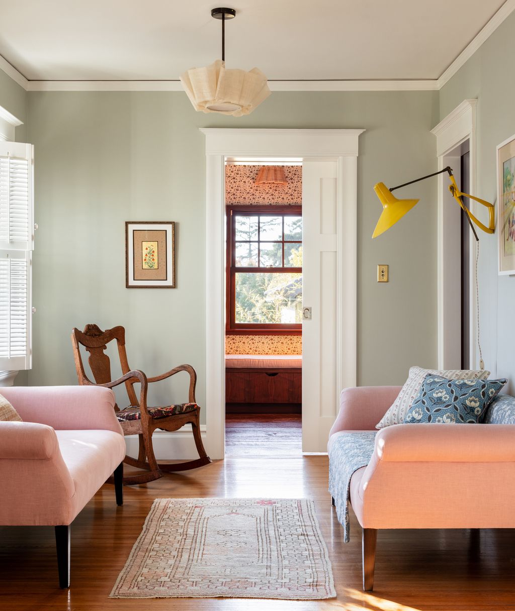 The owners, considering themselves stewards and caretakers, were conscientious about preserving as many of the original architectural details as possible, and making only interior alterations that felt authentic to the house. The wife, a native of Berkeley, who had spent time in France as a child, approached the interior designer Heidi Caillier with a moodboard full of the work of British designers, ‘who are great at combining vibrant colour with cosy elements. We all agreed that we wanted to put a new spin on some classic ideas.’