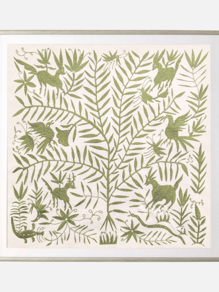 If your artwork doesn’t already come framed, consider glancing over our guide to framing. A favourite tip from designer and House & Garden Contributing Editor, Matilda Goad, is to try eFrame for affordable frames in custom sizes. If framing something simple in a series as mentioned above, play around with coloured mount boards or bobbin frames. Textiles, botanicals and 3D items are particularly nice in clear acrylic frames.