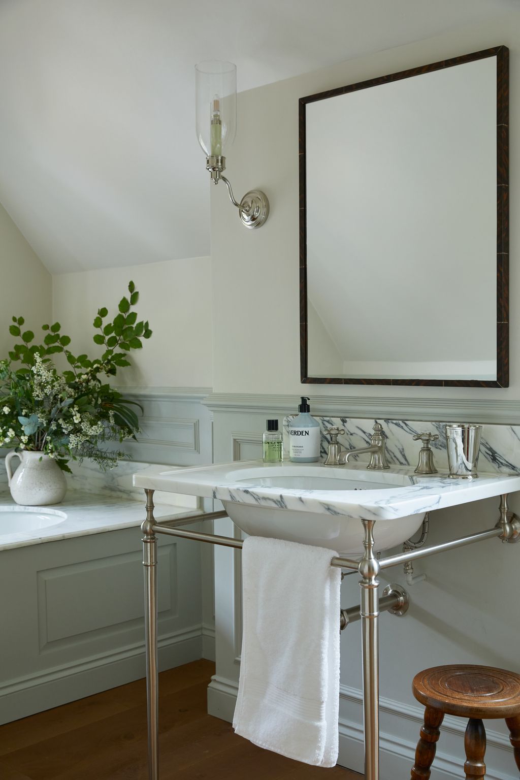 The overall effect walks a neat line between feeling clean and open but also layered and inviting. Antiques and objects by independent makers and craftspeople lend character, and textures are used to great effect throughout the house, from the woven fabrics that feature on headboards, curtains and trims, to the paper-backed linen on the walls in the main bedroom, which adds warmth and interest to the steeply pitched walls. There are elements of fun and playfulness throughout: in the guest bathroom, Isabella created a vivid scheme in blue and red zellige tiles, and the children's bathroom is given sophistication by a floral Antoinette Poisson wallpaper. With the clever layout, and areas of calm mixed with joyful touches, Isabella has created undoubtedly versatile interiors, perfect for a family to grow into over the years.