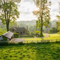 Approaching the schoolhouse, one quickly comes to understand that it was not merely the exceptional ceiling height that prompted the impulse buy. The view from the hillside setting resembles a stage set evoking quintessential scenes of rural England: a flock of grazing sheep munches away in the field below, with the village church and its tower visible through a canopy of trees.