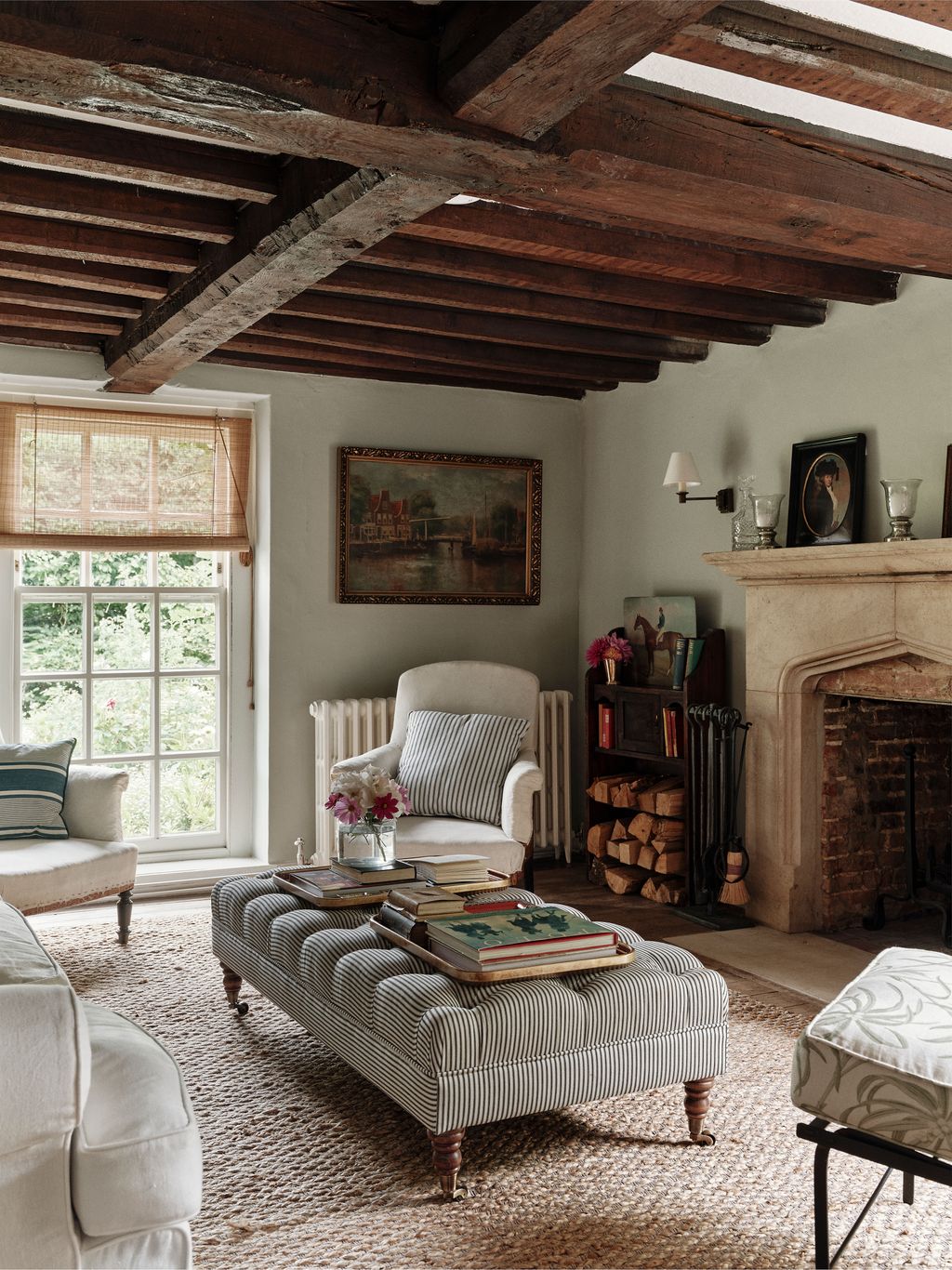 Luckily, the house had great bones for full-time living, and even with all the classic Tudor hallmarks: low ceilings, dark wood beams, stone mantlepieces, it remains surprisingly airy. ‘I think it’s rare for a house this old to be so light,’ says Juana. ‘One of my favourite spaces is the dining room, which has these two large windows which you can open and it feels like you’re outside.’