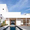 The empty parcel of land for sale had been used by a local farmer to grow tomatoes. Almost at once, Lorenzo saw that a modern courtyard house with a walled garden would suit the setting perfectly, providing privacy from the neighbouring buildings and creating a sheltered enclave. Having bought the site, he began drawing up ideas for the new house, with the main living spaces flowing out into the secret garden, with its terraces and swimming pool. The architect – who previously worked with Zaha Hadid, and at Foster & Partners and Ken Shuttleworth’s Make architects before launching DOS with Tavis Wright – placed two bedrooms and bathrooms up in the tower above a generously scaled ground-floor space. A further three bedrooms and bathrooms were arranged in an L shape across the courtyard, an arrangement that allows visiting friends and extended family a degree of privacy.