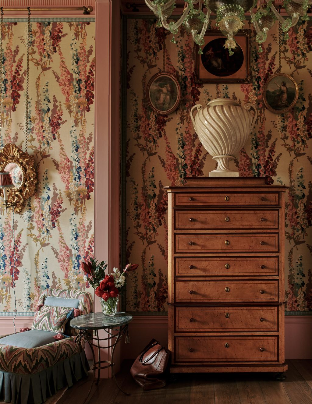And oh, what a room. By the time they were back in London, Martin was already imagining what he could do with it. He had conjured the idea of ‘creating our own Arcadian fantasy’. This is a word that crops up a few times during my visit. ‘This place is all about fantasy,’ Martin says. ‘I wanted it to look as though, in the 1930s, the fictitious earl that lived here married someone – probably an American with lots of money – and she redecorated the house.’ That gives some insight into the mind of this designer.