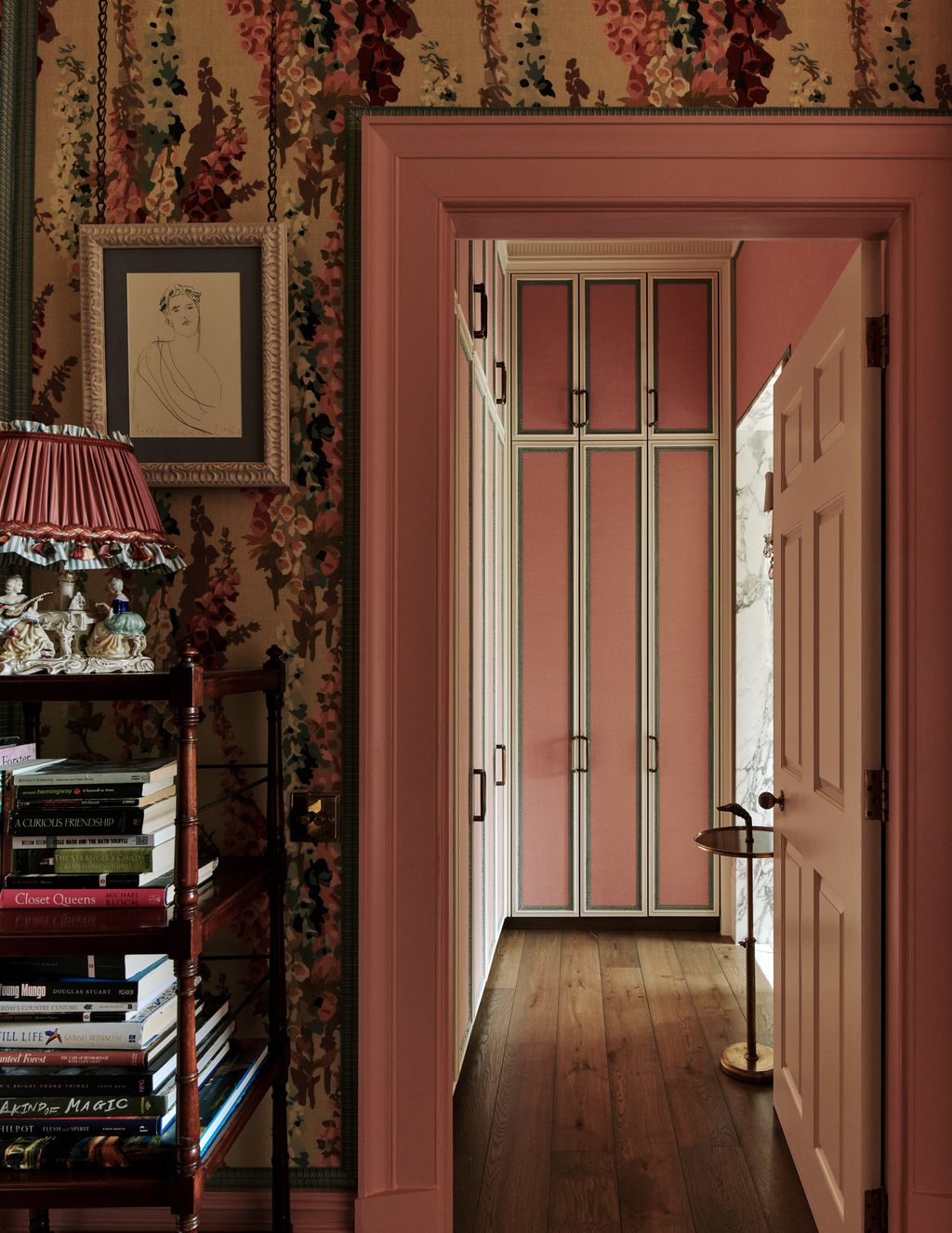To be clear, Jonathan is no innocent bystander. He played a key role in amassing the pictures and devising the exuberant curation: a series of dog portraits here, a collection of Italian flags there. There is a ‘Soane moment’ featuring plaster casts in the hallway. Pictures hang from thick ribbons and rosettes, in part inspired by the late American ‘Prince of Chintz’ – the decorator Mario Buatta.