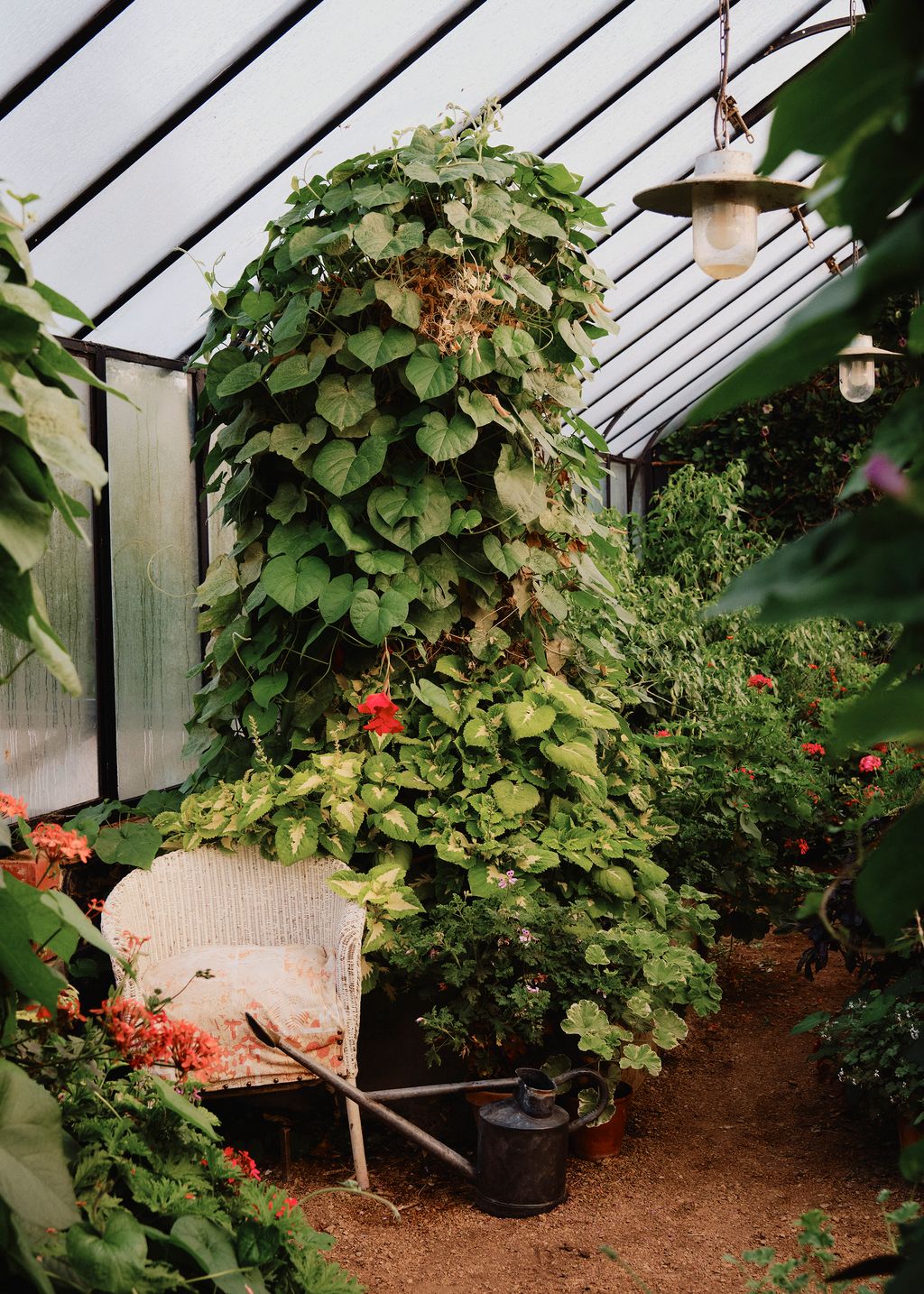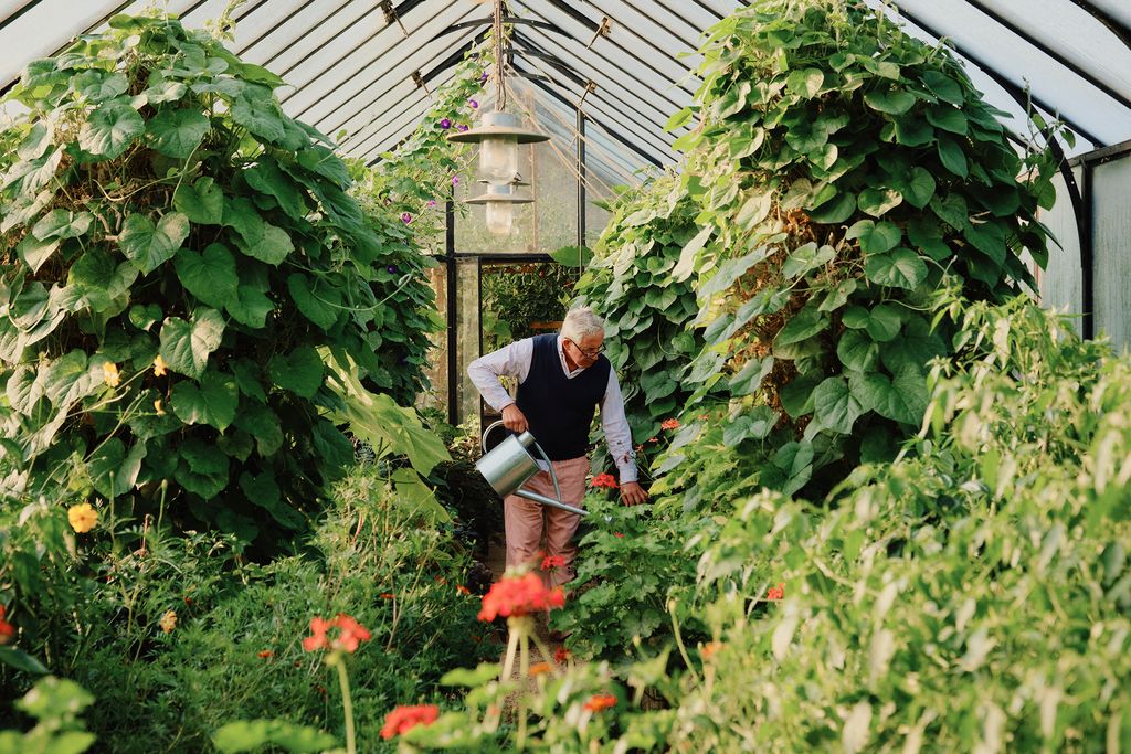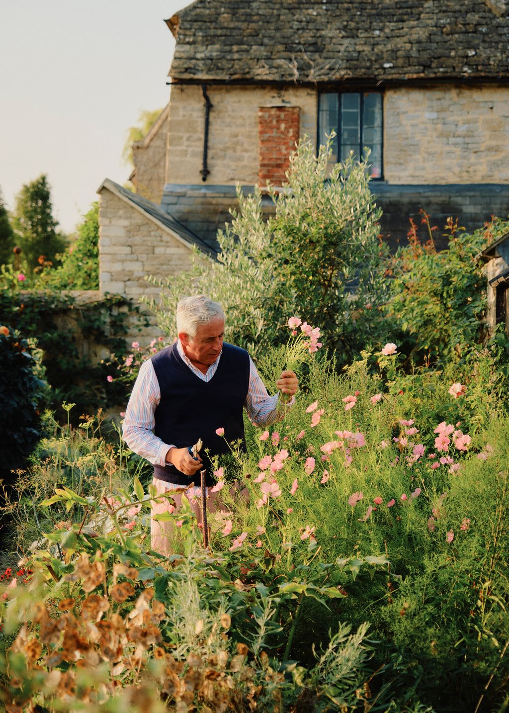 The leafy garden, however, is where his fantasy has found its fullest expression. With no ancient framework to follow, he was free to shape it from scratch, tracing routes that lead easily from one corner to the next – from flower beds to vegetable plots, the greenhouse to a pond shaded by a tall weeping willow. Unsurprisingly, it is as personal as the interiors and speaks most vividly of his passion for colour. ‘There are marvellous gardens, with perfect topiary and beautiful beds,’ he says. ‘Mine is a bit odd, a bit peculiar. For me, the most exciting thing is the flowers. I grow a lot of very bright ones, and when I make bunches I never put green in them.’