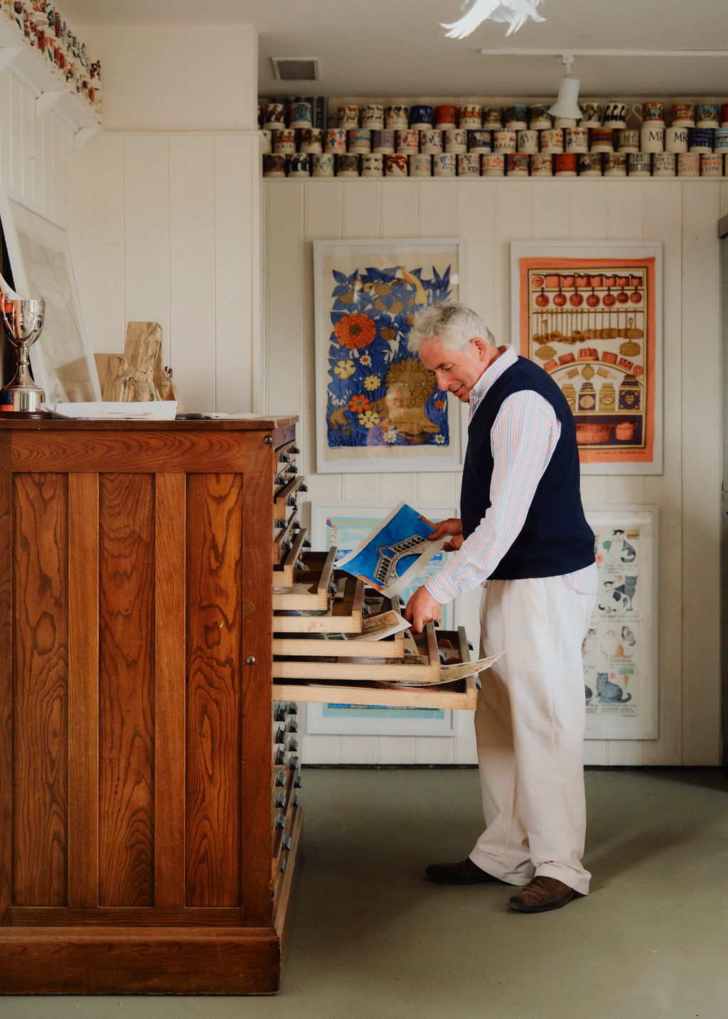 Over centuries of being pulled apart and pieced back together, Ham Court has become a patchwork of large and small rooms whose quirky proportions give it the cosy feel of a cottage, yet with the architectural interest of a grand country house. The spaces link in unexpected ways, offering shifting views that keep feeding Matthew’s theatrical eye and his constant reshuffling of objects, furniture and pictures. ‘I trained as a stage designer and in a quiet way I still think about what little coup de théâtre I can create as I go around,’ he says. ‘This isn’t a classical house. There are no great enfilades, but there are views, and I’m fascinated by how it feels to look through a doorway, the atmosphere, and how people respond to it.’