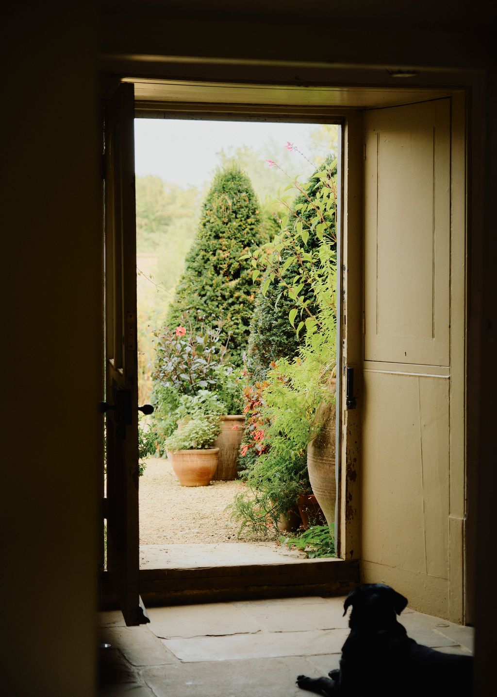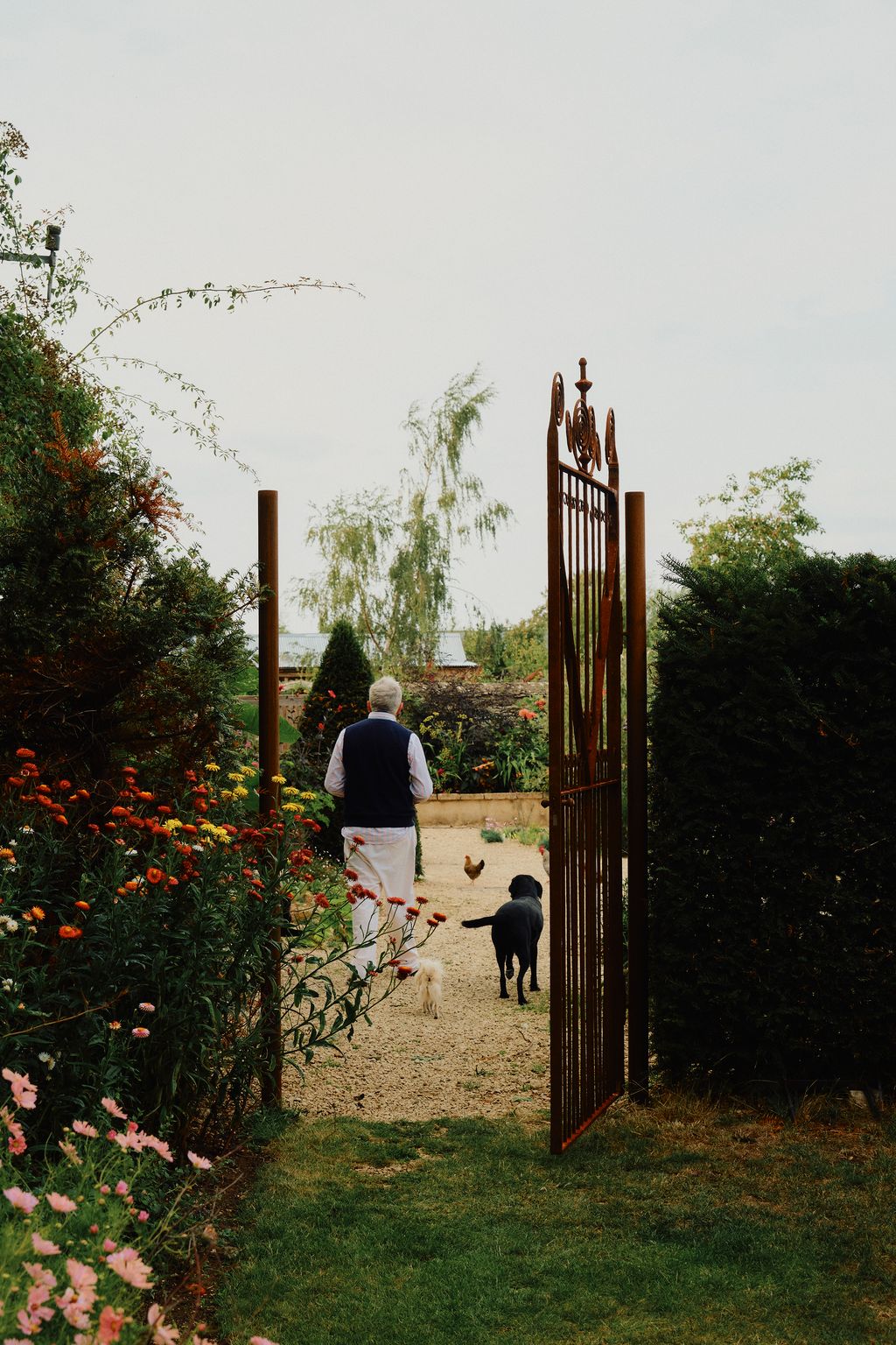 What felt like ‘a bit of a Cinderella project’ began with clearing away the detritus, a job that took nearly a year. The house then stood bare in a sweep of open ground, surrounded only by a few handsome barns and barely a tree in sight. What followed was not a wholesale makeover but a gradual labour of love. ‘It was a slow process of rebuilding something good where we’d knocked down something bad – and that was exciting,’ says Matthew, walking the gravel path towards the chickens’ yard, his watchful chihuahua Cookie trotting at his heels.