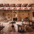If the grounds are pure Mediterranean country house playbook, the interiors veer delightfully away from expectations and are the result of Prentice’s organic creative process, led by his far-ranging sources of inspiration and give-it-a-go spirit. The kitchen, for example, features walls painted by long-term collaborator Jacob Kapica – in designs inspired by African mud patterns – a large-scale mosaic modelled on one in Tunis’ Bardo National Museum, as well as 19th-century Mallorcan decorative tiles. The hallway adjacent to the kitchen, meanwhile, is decorated in a pattern inspired by a motif found in a book about Pompeii given to Prentice by his mother.