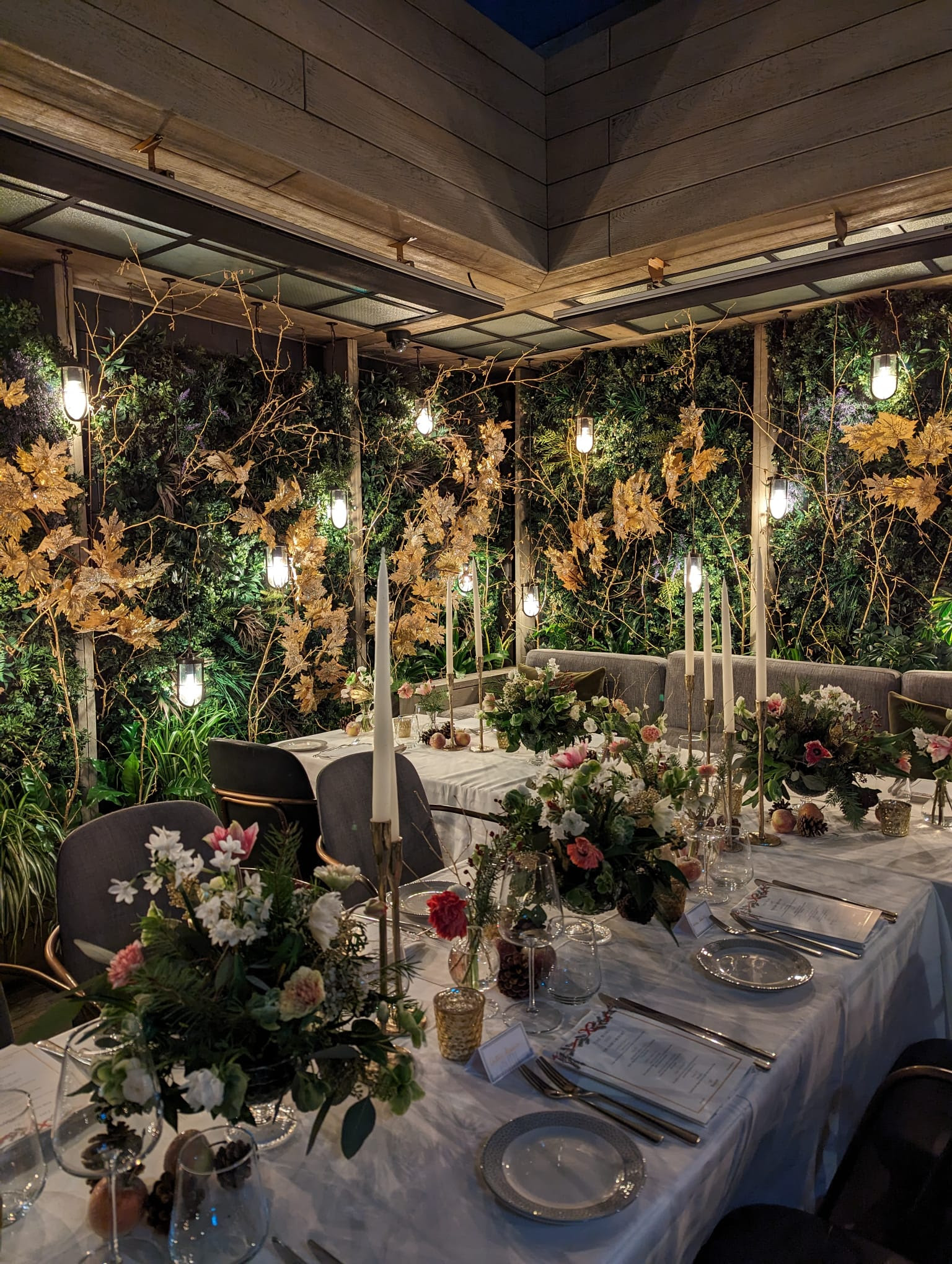 This serene garden was created by Anthony Challis and Dan Curran of Ginkgo Gardens. Trailing wisteria and climbing roses adorn the garden's pergolas, stone clad fountains and leafy trellises. The garden is part of the restaurant, so guests will need to order food in order to have a table or seat at the bar.