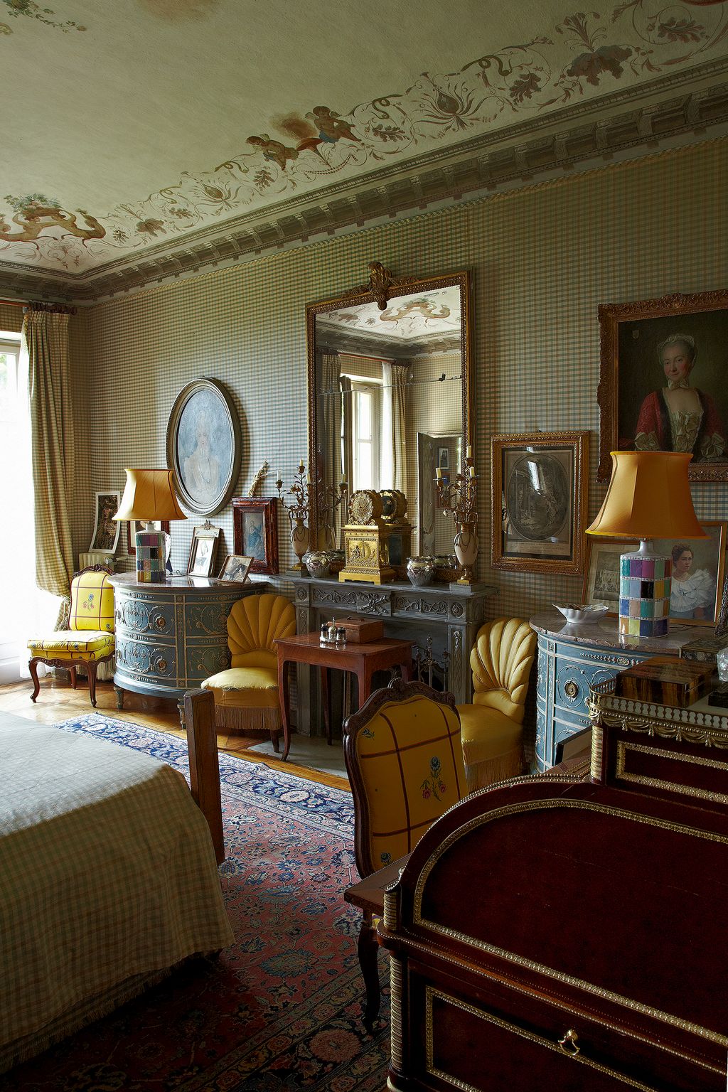 His only weakness was to spend a lot of time working with artisans on the beautiful rock-crystal chandeliers that are in almost every room. But priority was given to the kids (3 girls and 1 boy), and also to the four dogs (2 Greater Swiss Mountain Dogs, 1 Kaninchen Dachshund and 1 Shiba Inu) that took possession of the whole place. The result is a very happy home. Every bed and every pillow is just as it should be. Every seat, sofa, armchair is utterly comfortable. Every lamp is where you need it. The flowers all come from the garden. The food served is as simple as it is delicious. To my delight, no one knows how to turn on the TV, and books are available on every floor. Such a Mellow atmosphere. And lots of Yellow.