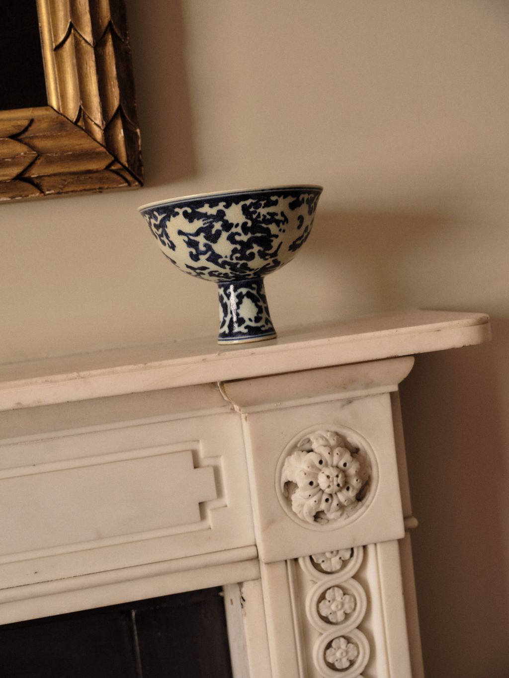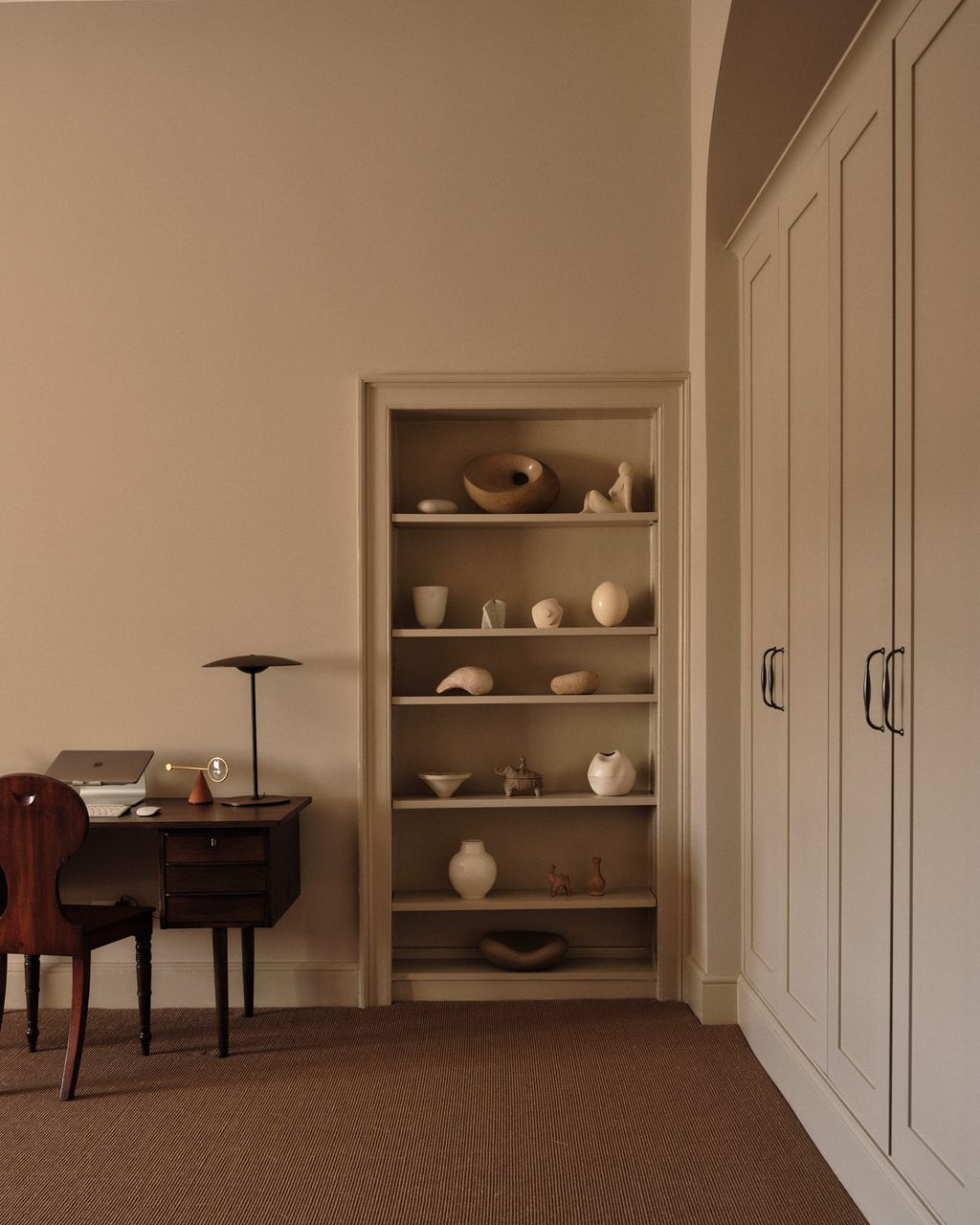 If the living area usually claims the spotlight, here the primary bedroom just off the entrance is just as compelling. ‘I’ve never had one that big – it’s huge, almost comical,’ she smiles. ‘Every time I wake up I think, wow, this feels so indulgent.’ A soft brown carpet grounds the room, which is generously scaled yet sparingly furnished. Art, unsurprisingly, takes pride of place: a 17th-century Dutch still life Rosa particularly cherishes hangs above the fireplace. ‘It actually looks better at night,' she explains. When I found it, I fell in love with it and I’ll never sell it.’ She also treasures a Ming dynasty reverse-decorated stem vase and three pieces by the Bath-based ceramic artist Paul Philip.