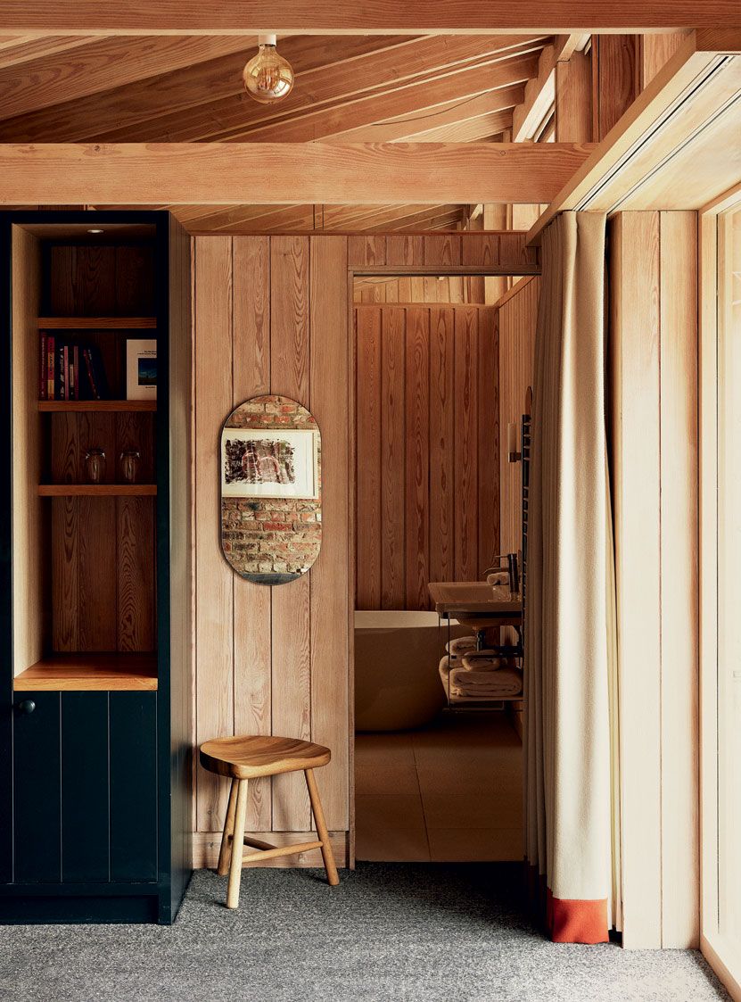 The renovated The Alice Hawthorn now has 12 bedrooms. ‘We are returning to the idea of the old-fashioned tavern, where you can stay, eat and enjoy yourself,’ says Angus Morrogh-Ryan of De Matos Ryan, the architectural practice behind the project. However, this tavern is very much of the 21st century. At its heart is the old pub: a pretty redbrick building with an appealing restaurant that makes imaginative use of local produce, a smaller bar area and, upstairs, four spacious and elegant bedrooms. At the back, arranged around a courtyard/pub garden – envisaged by Angus as an extension of the village green, inspired by the idea of the Norse ‘garth’ or grassy cloister – is a series of beautifully detailed timber-framed, larch-clad buildings. Completely modern in spirit and design, they contain eight further bedrooms.