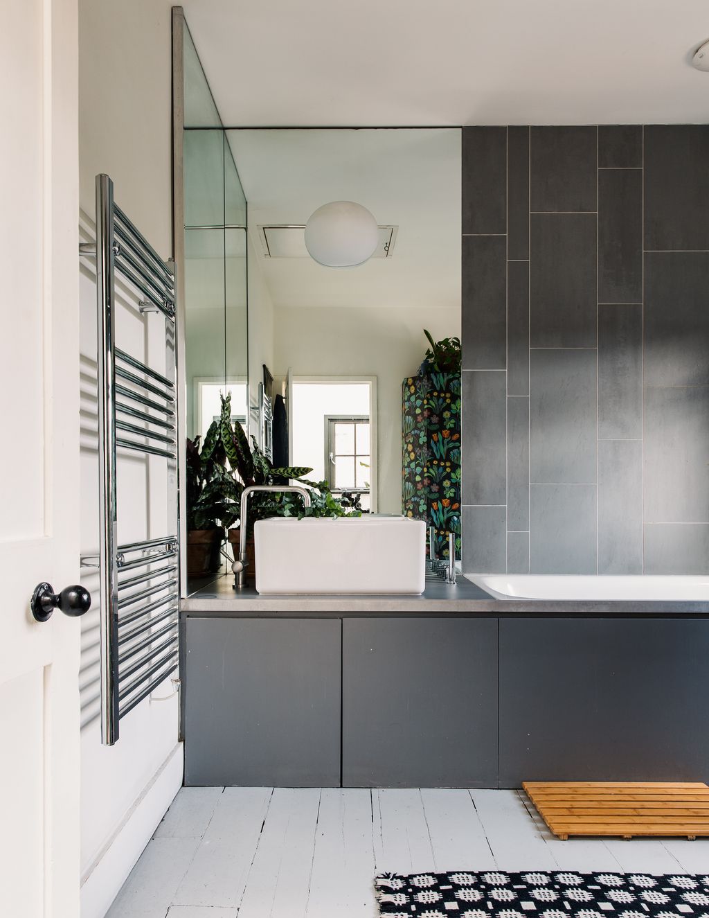 The view at the back, framed through bifold doors and three huge picture windows that punctuate the extension, is equally unexpected: a wonderfully wild, jungle-like garden that rises up around the house and feels far removed from south London. ‘It’s such an oasis,’ Connie says. The previous owner – architect David Money – had built the garden up so that you look directly onto the plants rather than down to them. ‘It’s like looking at a painting,’ Connie says. ‘I love watching our friends' faces when they visit, because the garden just immediately relaxes them.’ Connie’s studio, occupying the rear room on the ground floor of the original Victorian footprint, also looks out onto the garden. ‘It’s such a good place to work and even in the depths of winter, I end up having the window or door open so that I can hear the sound of water in the pond, which the previous owner cleverly put in.’
