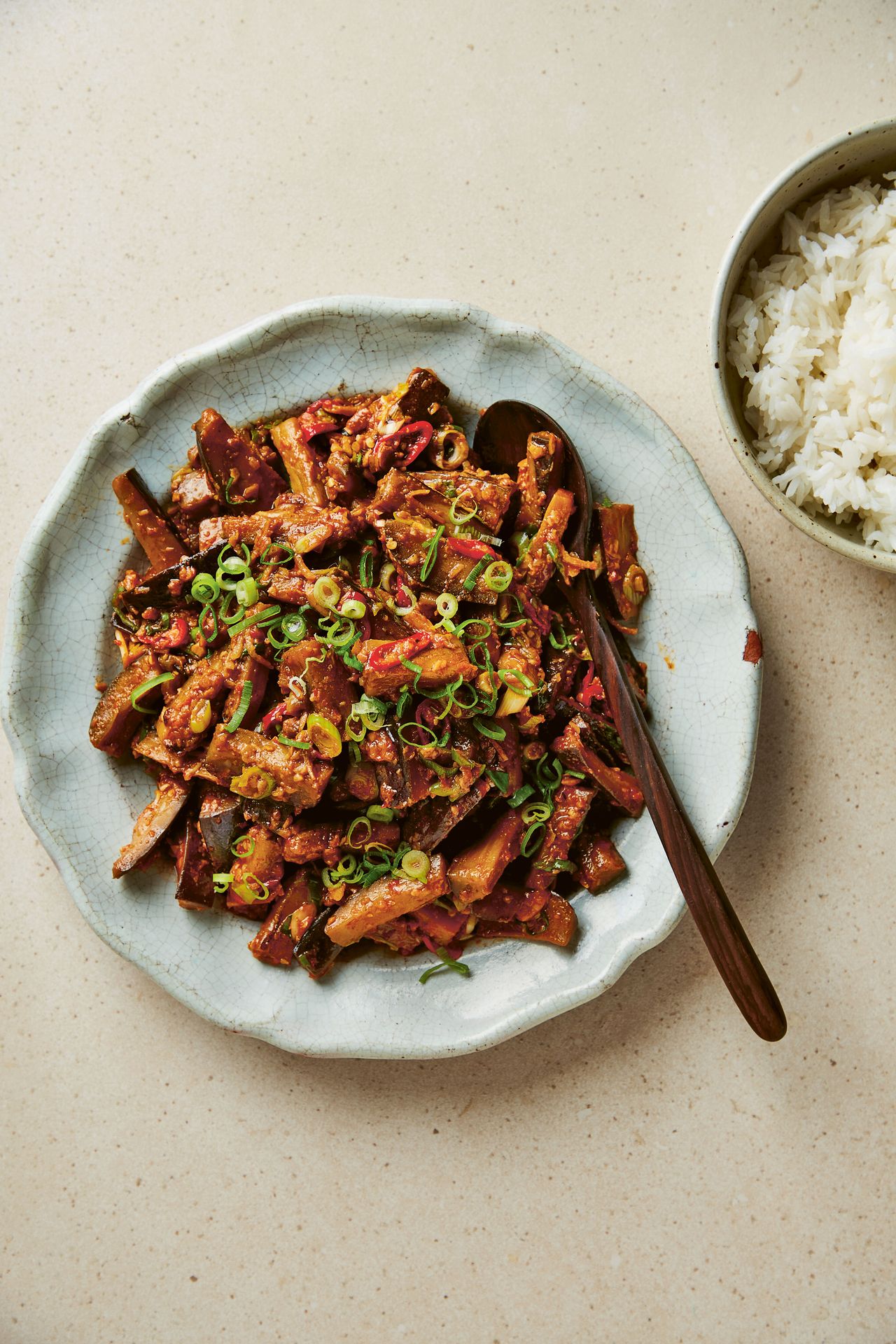 Aubergines (or eggplants) are, in my view, a seriously underrated vegetable. They are a top-tier flavour sponge and cook very quickly. I like to pair this side dish with a protein main that isn’t spicy and isn’t stir-fried; e.g. Lime, Coriander and Shrimp Paste Chicken or Trout with Tamarind, Chinese Mushrooms and Celery. This way, I can cook the aubergines while the other dish is cooking in the oven or steamer.