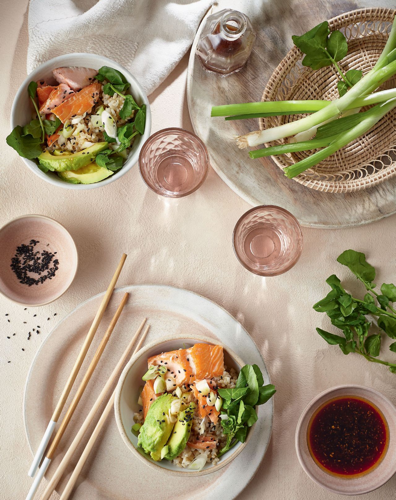 Brown rice has shed its Seventies-health-food image and we have come to appreciate the texture and nutritional benefits. As a rule of thumb, colour, texture and less refinement equals more fibre, protein and nutrients. Serve each guest a deep bowl of warm rice and lay the rest of the ingredients on a serving plate for them to help themselves – mixing everything into the rice to eat with chopsticks or a fork. Other toppings I love are leftover chicken and crispy kale, or roasted vegetables and lots of coriander.