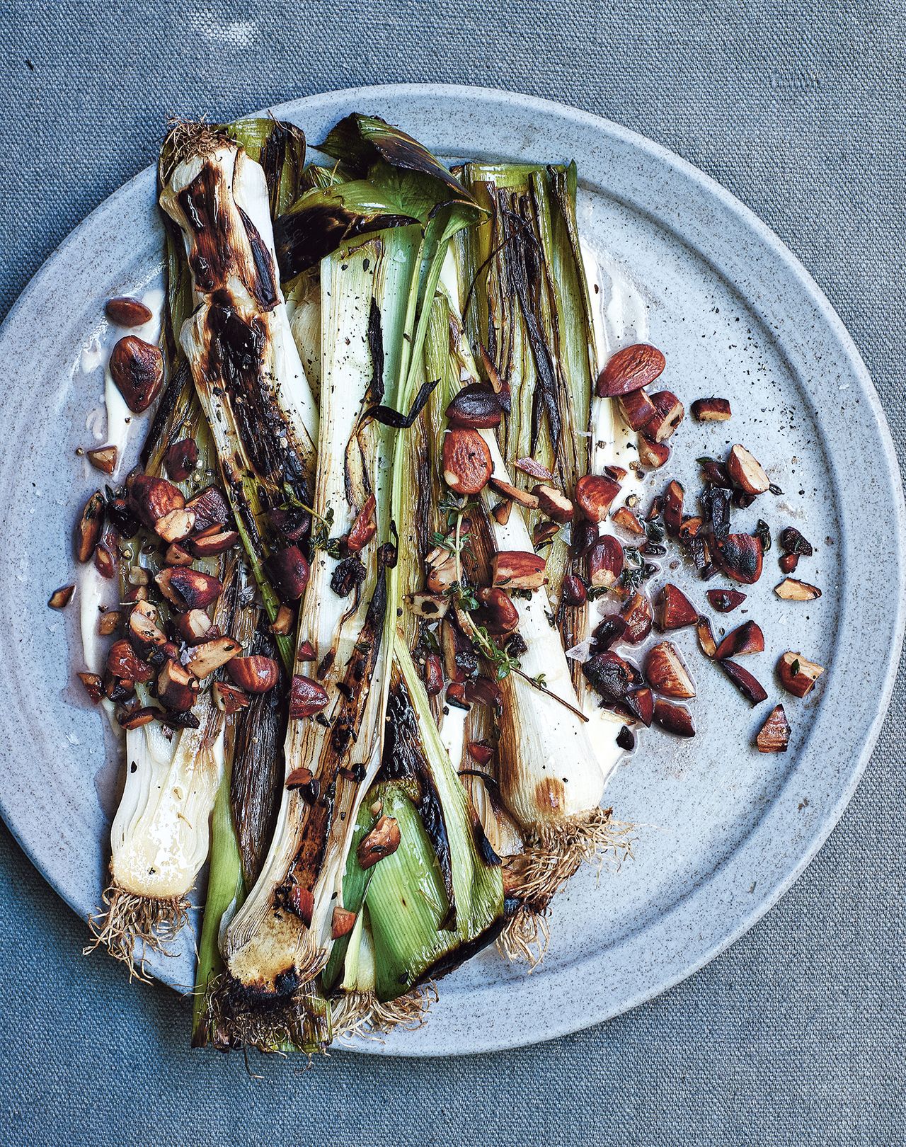 A touch of charring brings a delicious flavour to sweet leeks, heightened by a judicious drizzle of red wine vinegar, in this recipe from the cookbook Copenhagen Cult Recipes