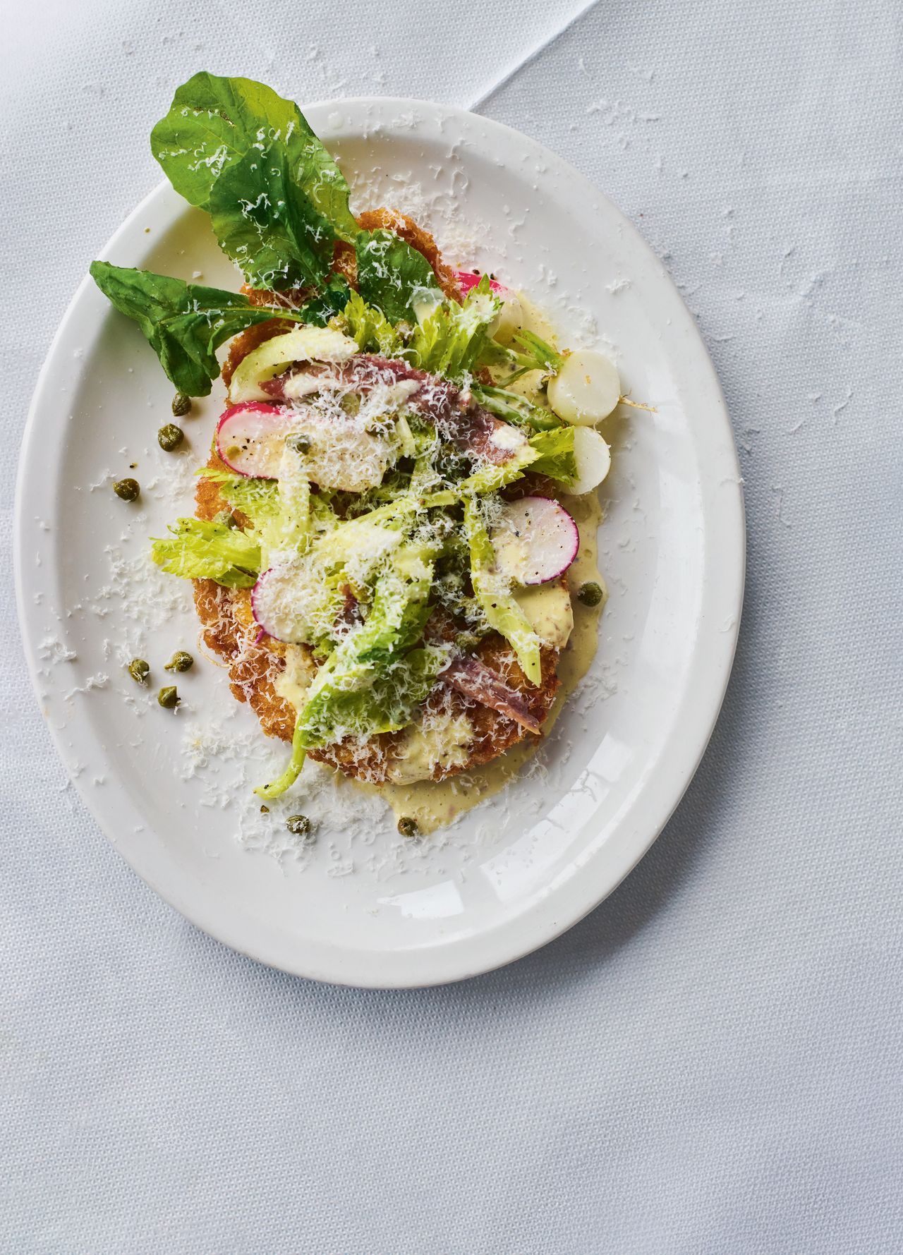 A pounded veal loin covered in breadcrumbs and fried until crisp provides the perfect canvas for this punchy salad.