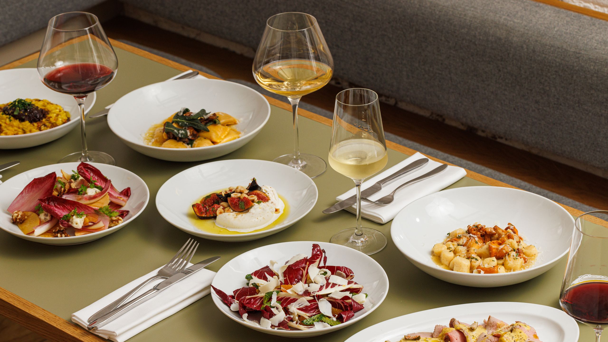 A palatial upscale Italian located in the Corinthia London, the recently opened Mezzogiorno boasts a menu of elegant takes on mainly southern Italian cuisine, drawing from Mazzei’s Calabrian background, alongside other regions such as Puglia. The interiors have a romantic grandeur, with vast pillars, high terracotta-painted ceilings and blush pink banquettes. Luckily the food more than holds its own against these opulent surroundings, down to the liquid gold of the olive oil served with the bread basket.