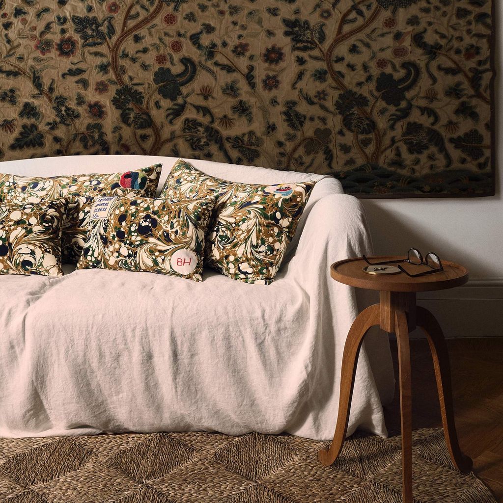 Meanwhile, Liberty, Selfridges and Matches Fashion can reliably be counted on for more marble than Augustus Caesar’s Rome, stocking pieces by Summerill & Bishop and by Newcastle-based Susi Bellamy, who makes cushions, fabrics and velvet lampshades in lush, deep marbled colours.