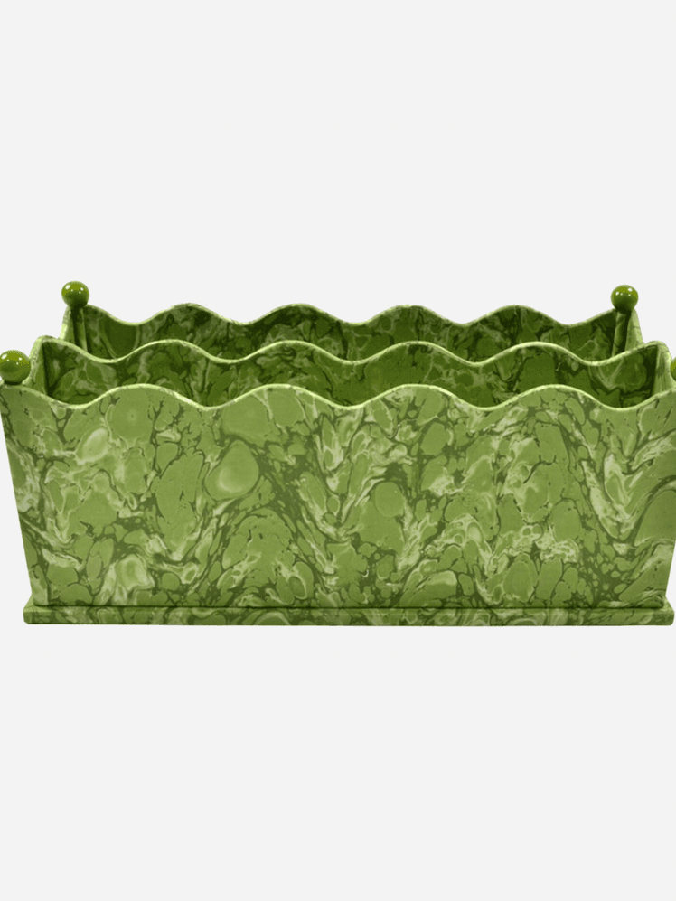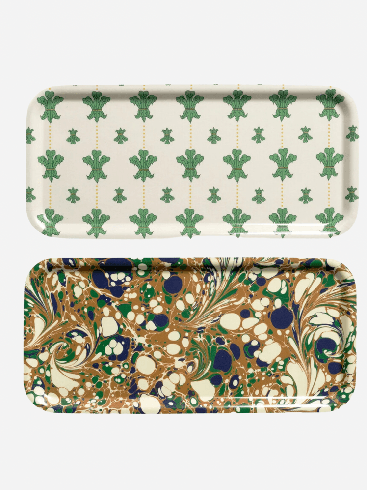 Smaller independent creators who use marbling range from Parvum Opus – whose herb-green letter sorter we covet – to Cambridgeshire’s Payhembury and West London’s Rosi de Ruig.