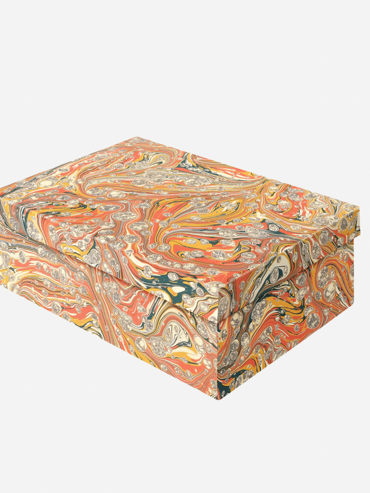 Giulio Giannini of Florence is one of the most esteemed marblers in Europe, with a workshop that has been producing the patterns since the 1800s, and who recently collaborated with Acqua di Parma and luxury furniture makers Artemest to create a box for a candle whose design almost drips and flows like the wax of the candle itself.