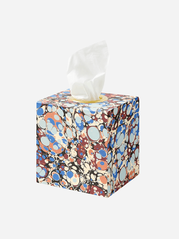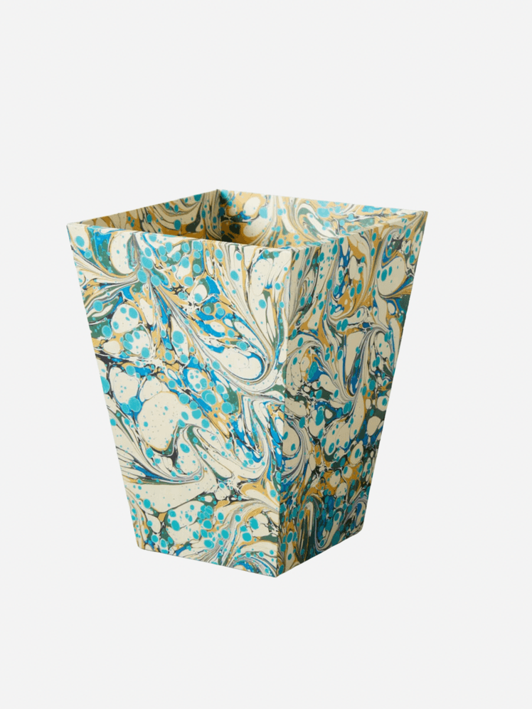 If a statement wall is too much for you, then marbled objets are an easier way to enjoy the style. Paper is one of the most obvious, and traditional, applications for marbled designs, and Choosing Keeping offer dozens of different printed sheets at relatively low cost – these are great if you want to make your own greetings cards, wrap a gift or paper over something in a fresh and engaging way, or even try your hand at bookbinding. Though we’d forgive you for buying a pre-papered box file or paper bin…