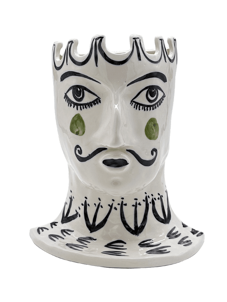The result is a range designed to delight. Plates loosely inspired by the Bloomsbury aesthetic are hand painted with a relaxed, easy touch in a Delft-esque blue are enlivened with bold red dots. The colourful, joyful figurative vases–an instant conversation starter–are sure to bring personality to any table or mantelpiece. ‘The overall mood is light-hearted and playful, to bring a smile to your face,’ Gavin explains. ‘People living with these pieces should have fun; the plates can be mixed up and added to. Sitting in a fun table cloth adds to the party.’