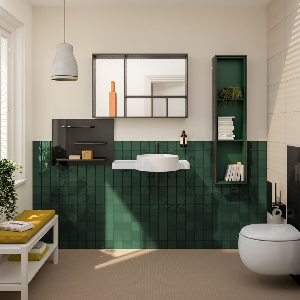 Colour is a key part of designing a bathroom that feels like a true reflection of your personality. Of course this can be done by means of tiles, paint or even wallpaper, but increasingly designers are looking to the sanitaryware and furniture itself for an injection of colour. We’re not talking about the bright acid hues of retro bathroom suites, but rather more refined, muted shades. Several of VitrA’s collections offer colourful finishes: the ‘Plural’ basins by Terri Pecora come in rich moss green or terra rossa, in a contemporary matt finish. Shades of green are fitting for the serene mood of a bathroom; we particularly like the soft blue-ish fiyord (green) of VitrA’s ‘Sento’ vanities and cabinets. These colours are easy to mix and match for a striking look.