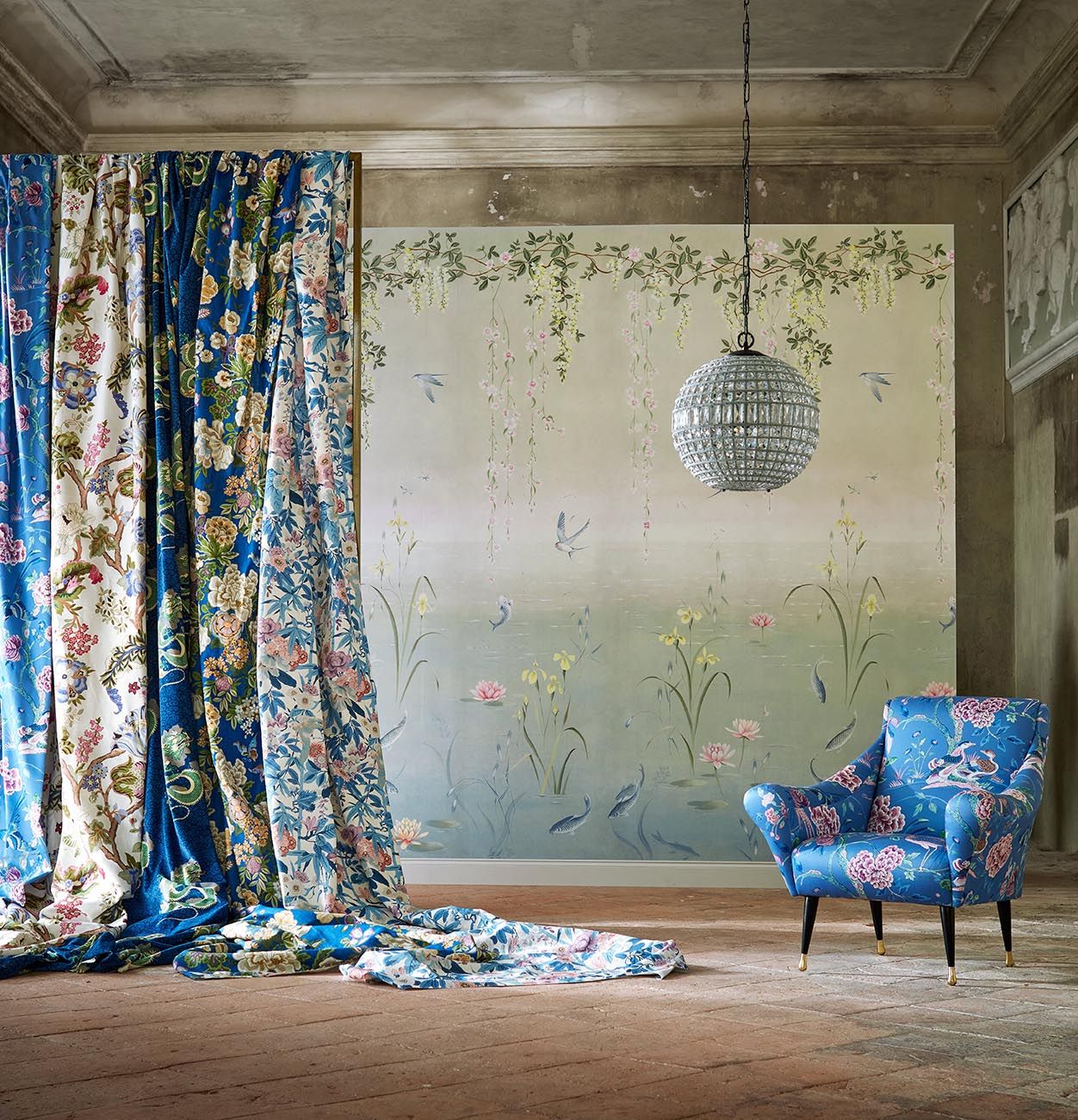 The latest offering from highly respected heritage British company Sanderson has an appealing resonance, referencing its illustrious past with a fresh take on favourite classics. The Water Garden collection stylishly reinterprets beautiful archive designs, which hark back to a golden age of English decorating – the period spanning the end of the 19th and beginning of the 20th centuries. Furnishings from this era were wonderfully atmospheric, featuring eye-catching natural motifs, rich colours and exotic influences from Japan, as well as China and India.