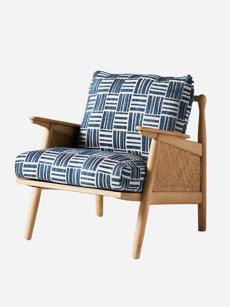 Such a joyful spin on the typical wooden armchair. Eye-catching without being over the top, smart but casual, and has a Scandi touch with its clean lines and blue and white fabric. Simply put, it would be at home in a range of interiors.