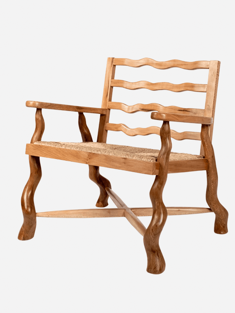 This chair is based on a lounge chair which was designed for the planned city of Chandigarh, an immense project led by architect Le Corbusier. The original chair was designed by Pierre Jeanneret, Le Corbusier and Eulie Chowdury, who was the only female architect on Le Corbusier's team. As with the original pieces, this modern reiteration has been crafted using artisanal rattan weaving and traditional joinery techniques.
