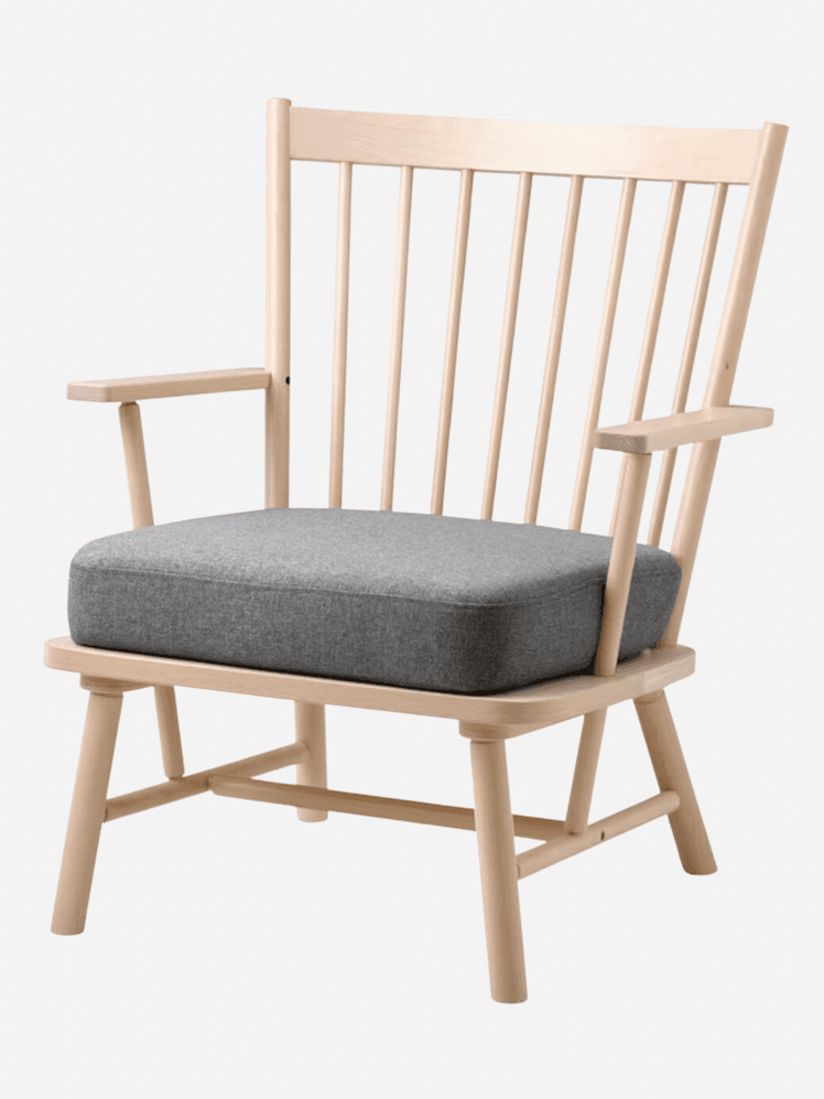 A simple and pleasingly proportioned option, the Persbol from Scandinavian stalwart Ikea has a whiff of retro Ercol about it with its spindle back and wooden arms. It's a total bargain at £150, has a comfy foam-filled grey cushion and comes in three colours, natural birch, black or brown-red.