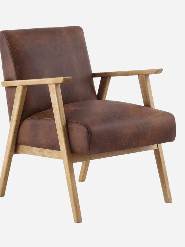 Leather (or faux leather) mid-century style iterations often come with wooden frames, though leather tub chairs can be found too.
